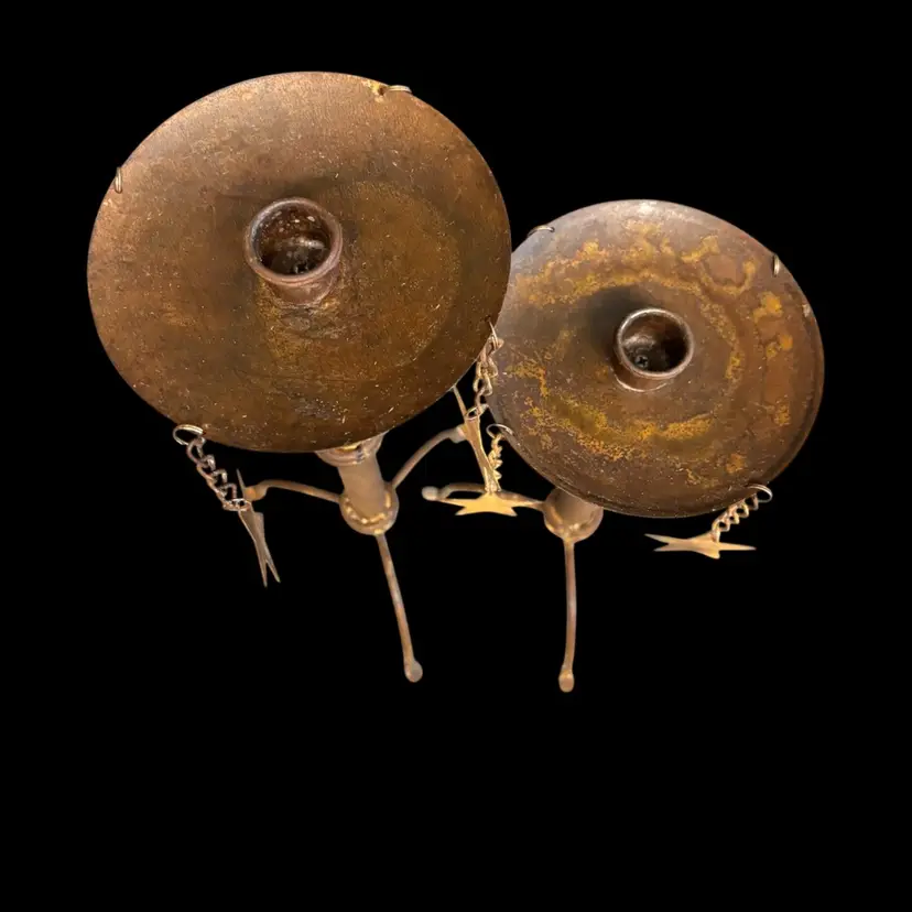 Looks to have been kept outside but looks good with petina. Graduated sizes: 14” and 11.5”