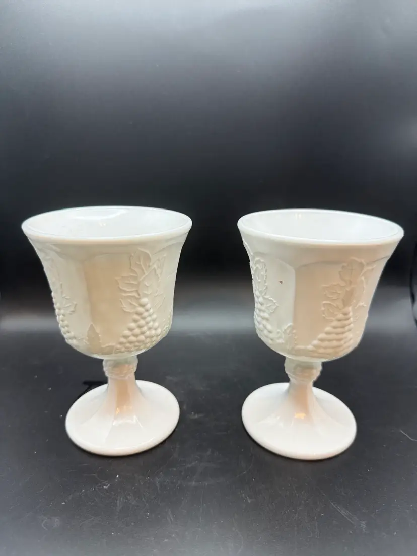 The 'Colony' line, introduced in the 1950s, featured various patterns, with the 'Harvest Grape' being one of their most recognizable and enduring designs. This pattern is characterized by its embossed grape clusters and leaves. These stand 5 1/2 inches high.