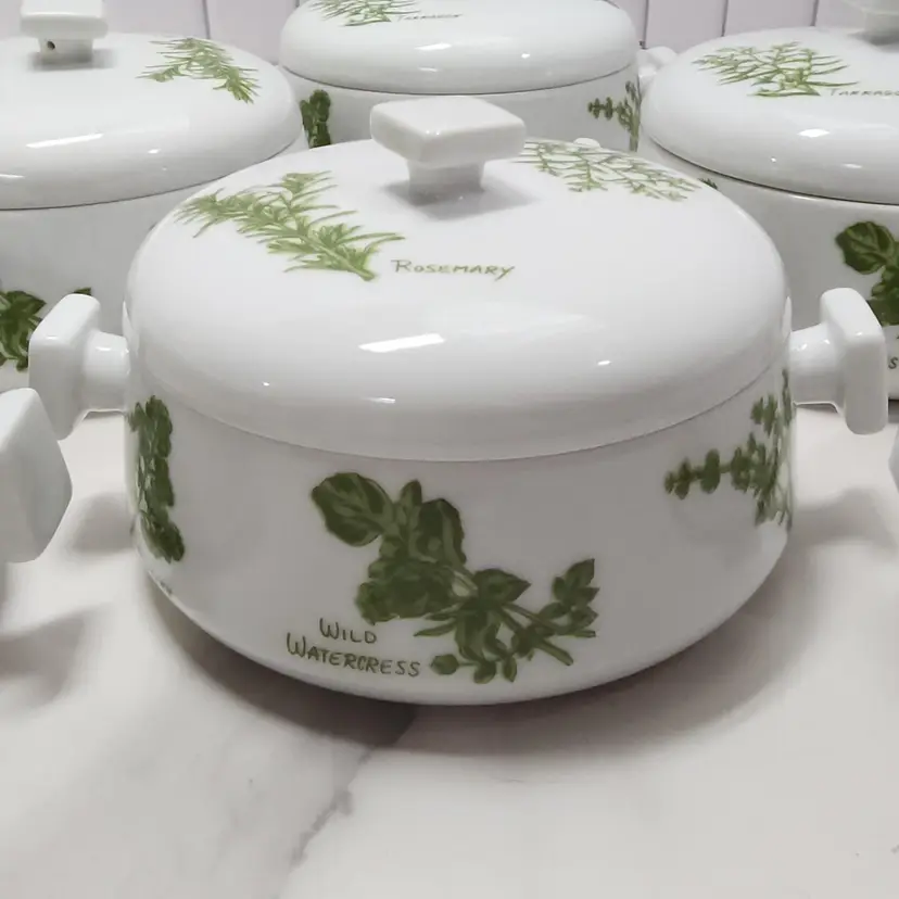 Oven to Table, A Gardener's Dream. Set of 2 Individual Casseroles with lids.