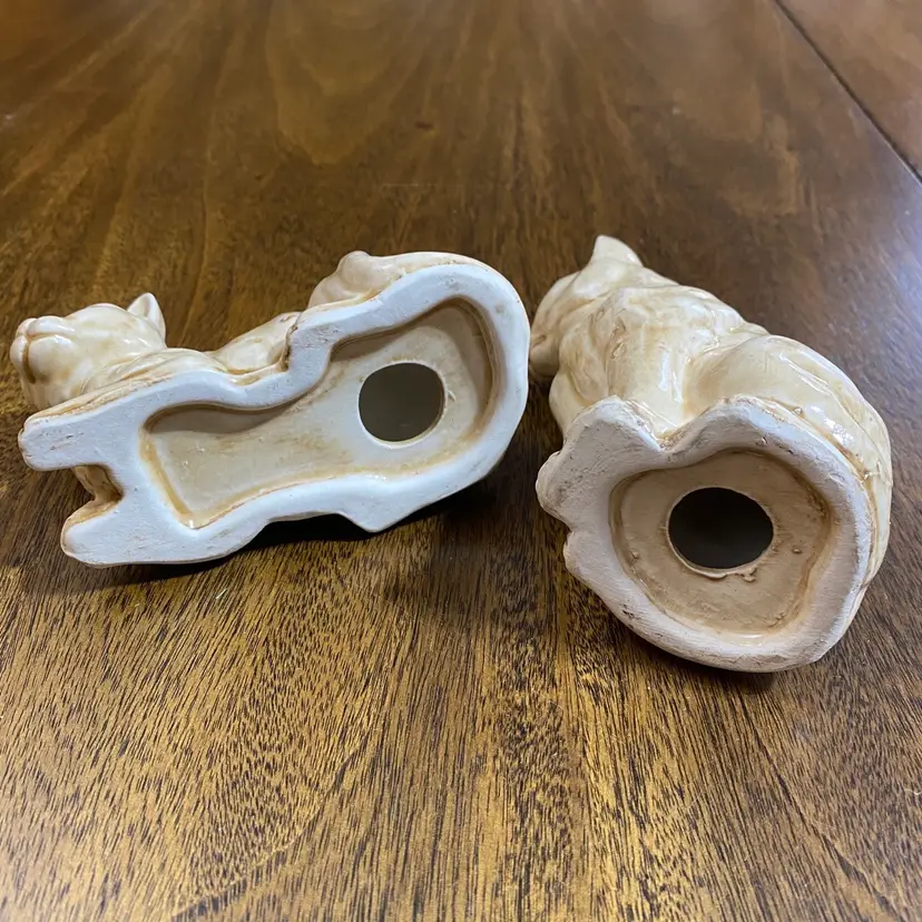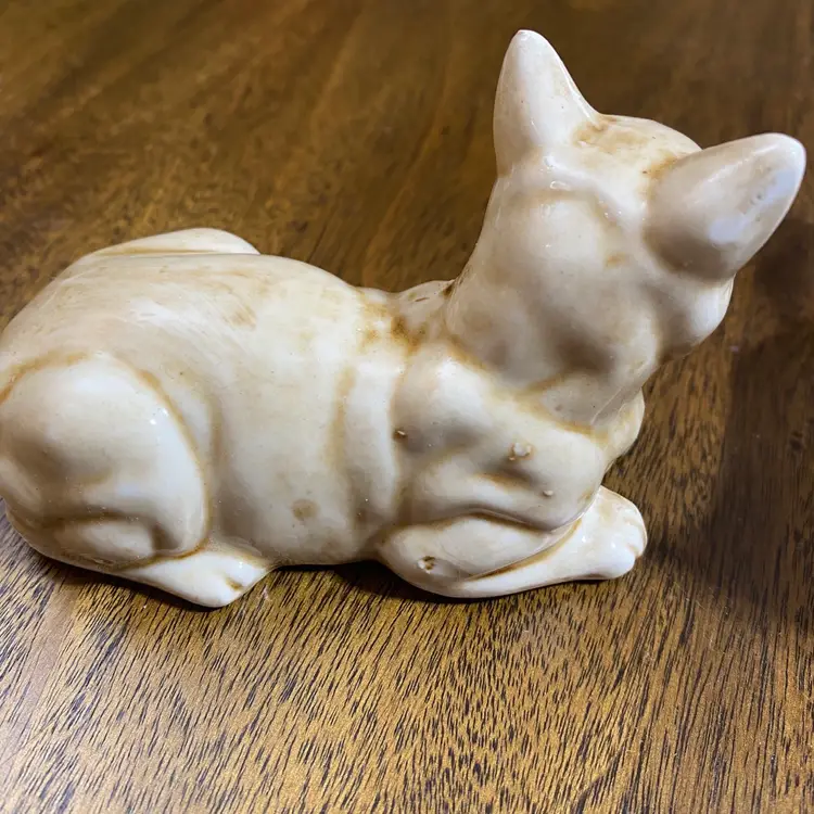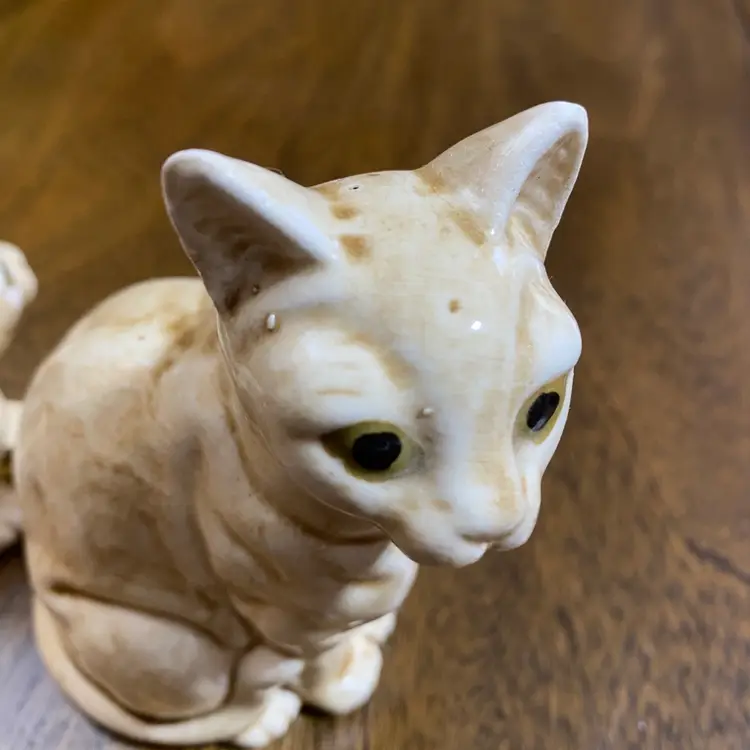 Size: PAIR OF TWO. Laying Cat is about 4 1/2” x 2 3/4” AND Standing Cat is about 4” x 2 1/2” Color: Tan Material: Ceramic Condition: no chips or cracks. There are some little bumps in various places from when they made them. Please see photos as it’s part of my description.