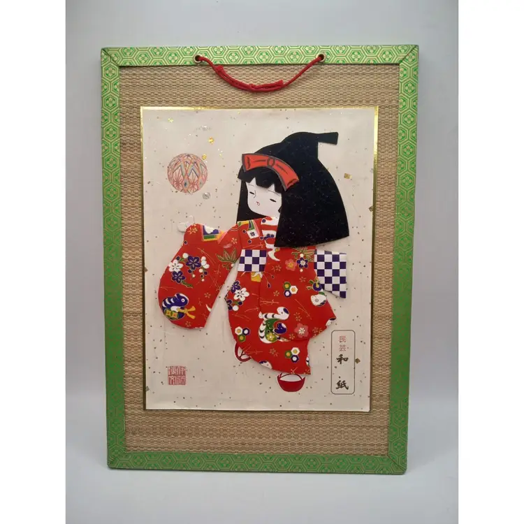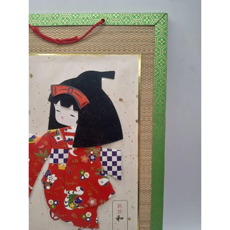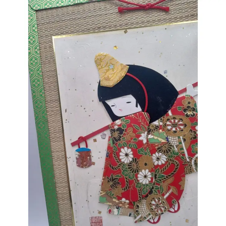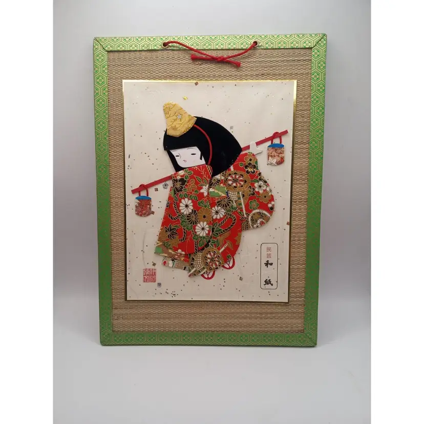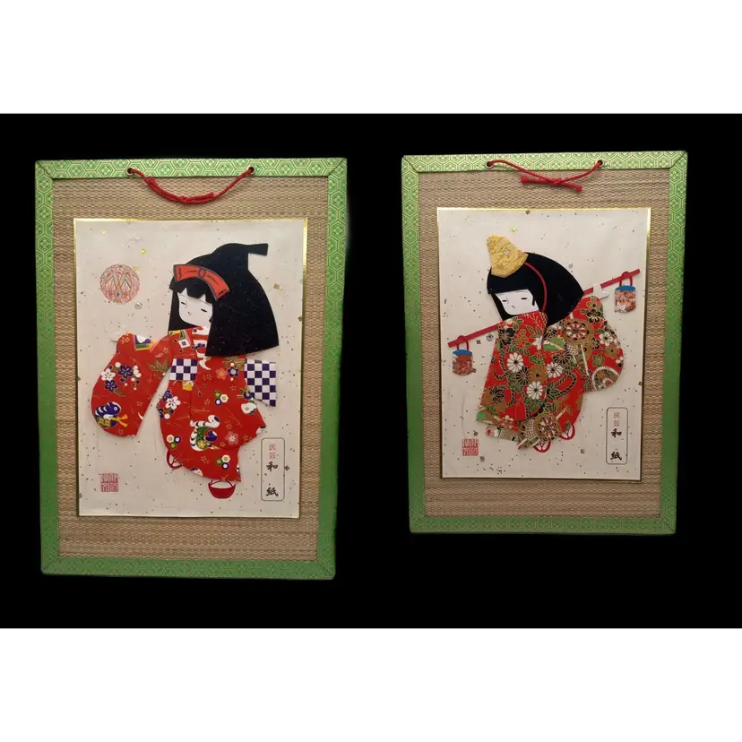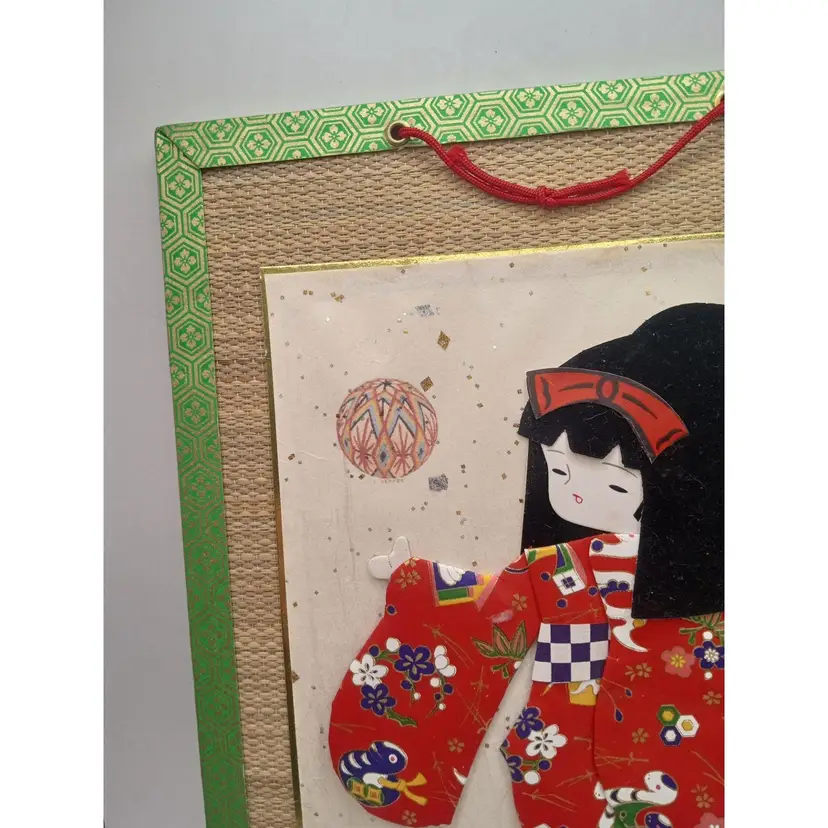 Pair of Japanese Art 3D Silk Fabric Girl in Traditional Kimono Outfit Measurements: W 8 1/2in x H 12in Weight: 8 oz. Condition: Pre-Owned in Great condition