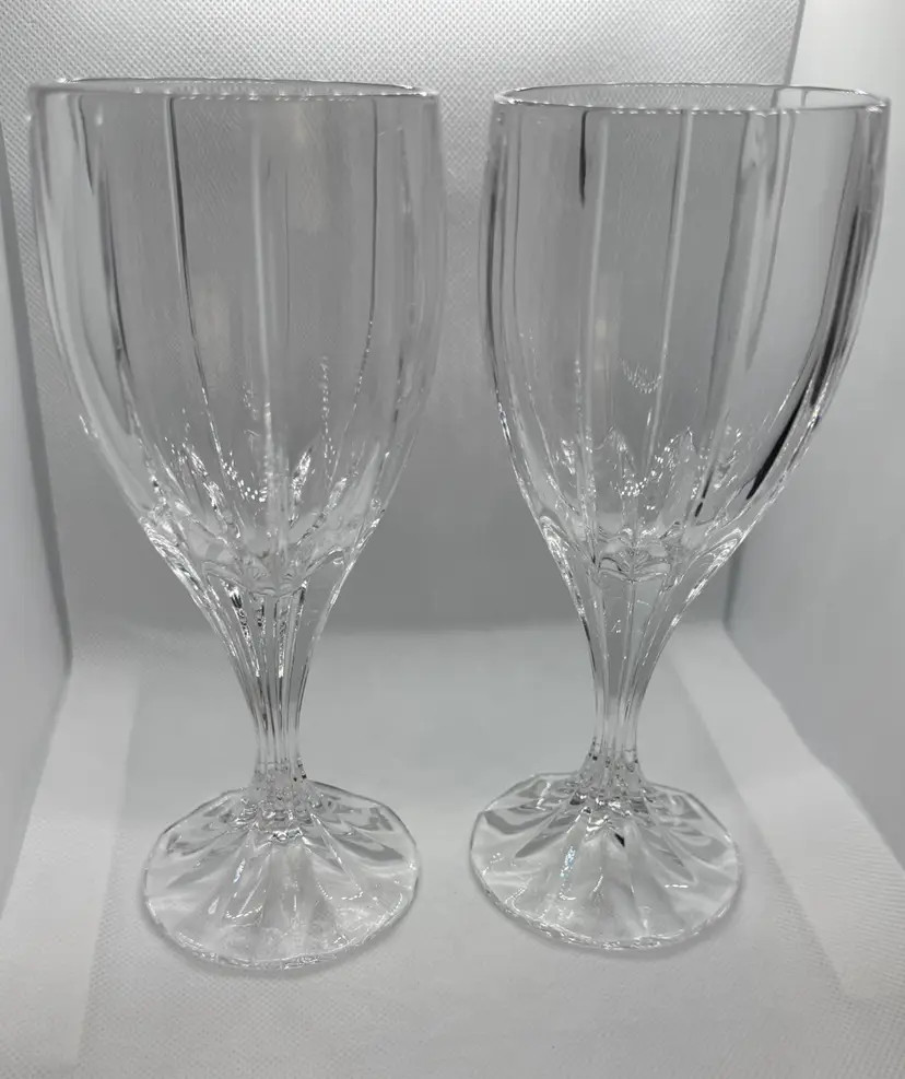 Pair Of Mikasa “Park Lane” Cut Crystal Wine Glasses