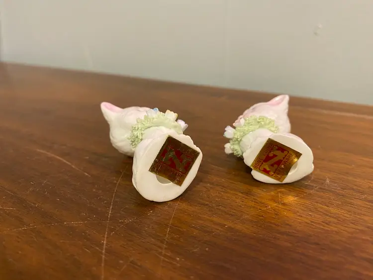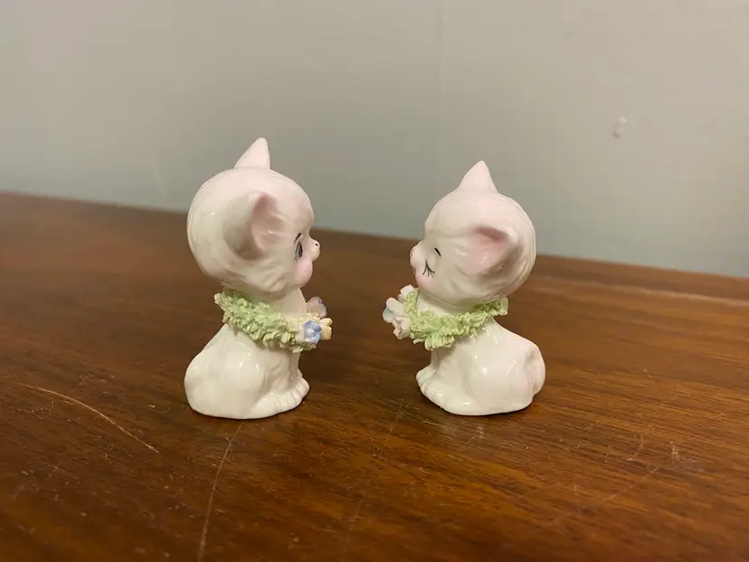 Pair Of Napco Bone China Figurines Cats Ceramics Minis Flowers Spring