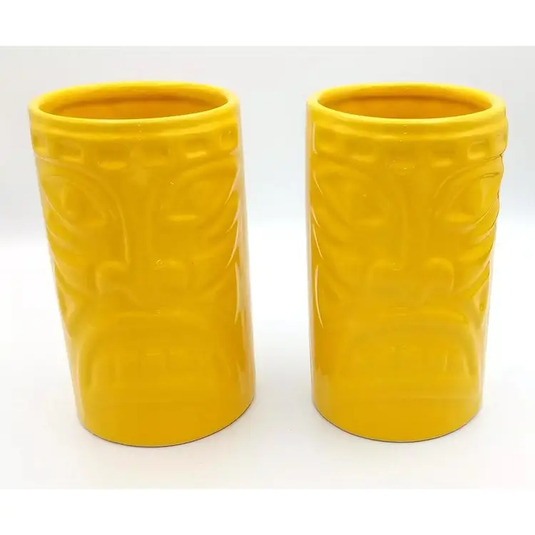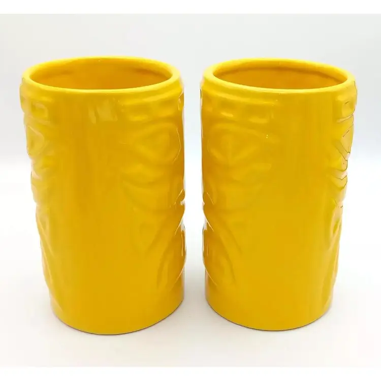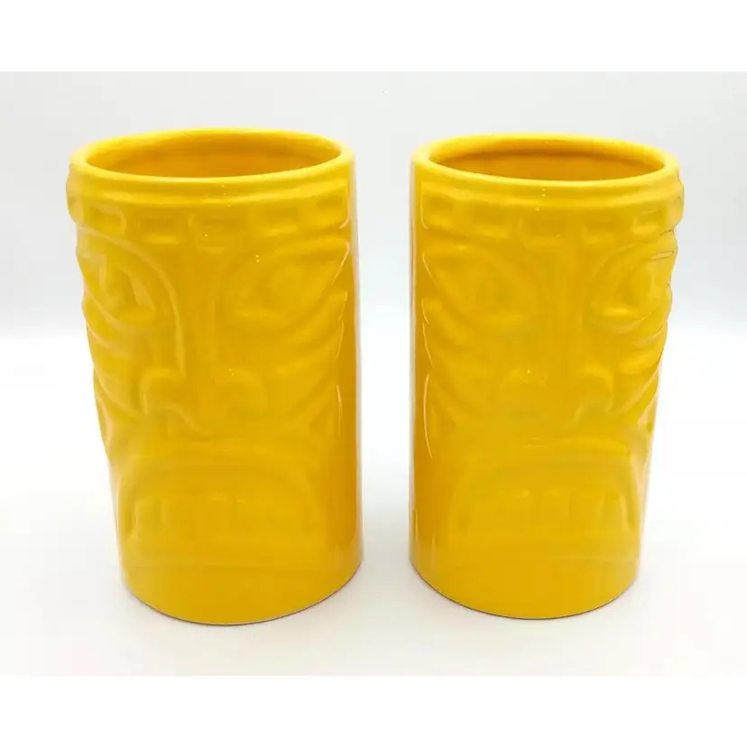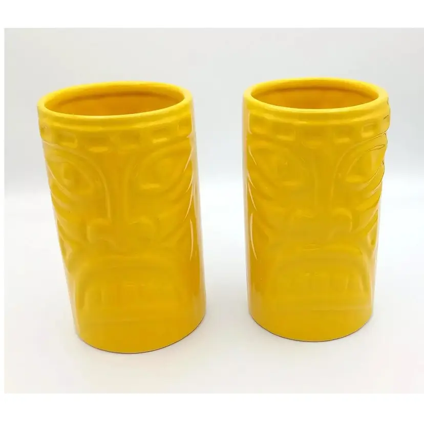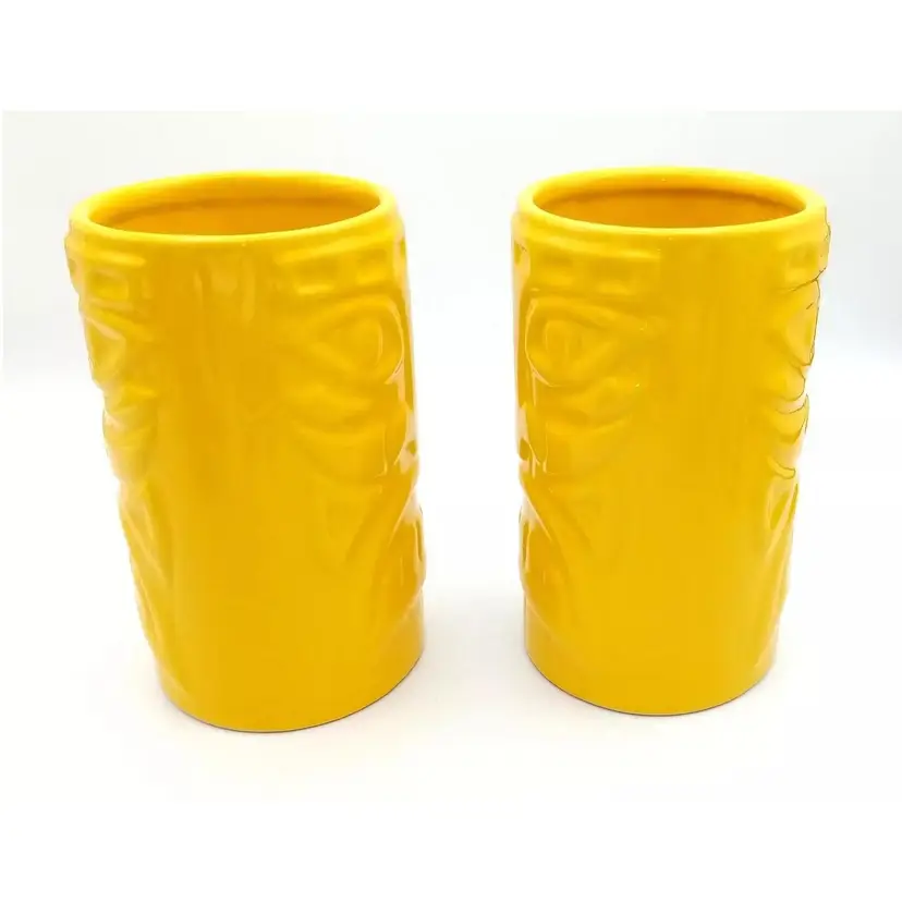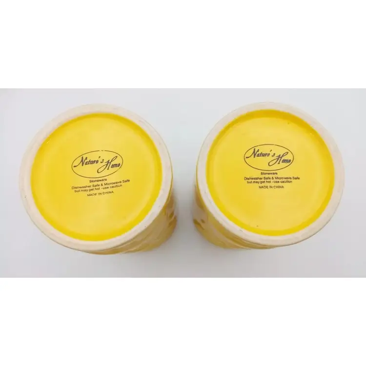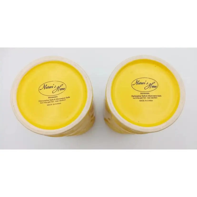 Items are in excellent pre-owned condition with no cracks or chips. They are dishwasher and microwave safe, although it states they may get hot and to use caution. They stand about 5 1/2"in height. Just a bright, fun pair of tumblers. Thanks for looking!