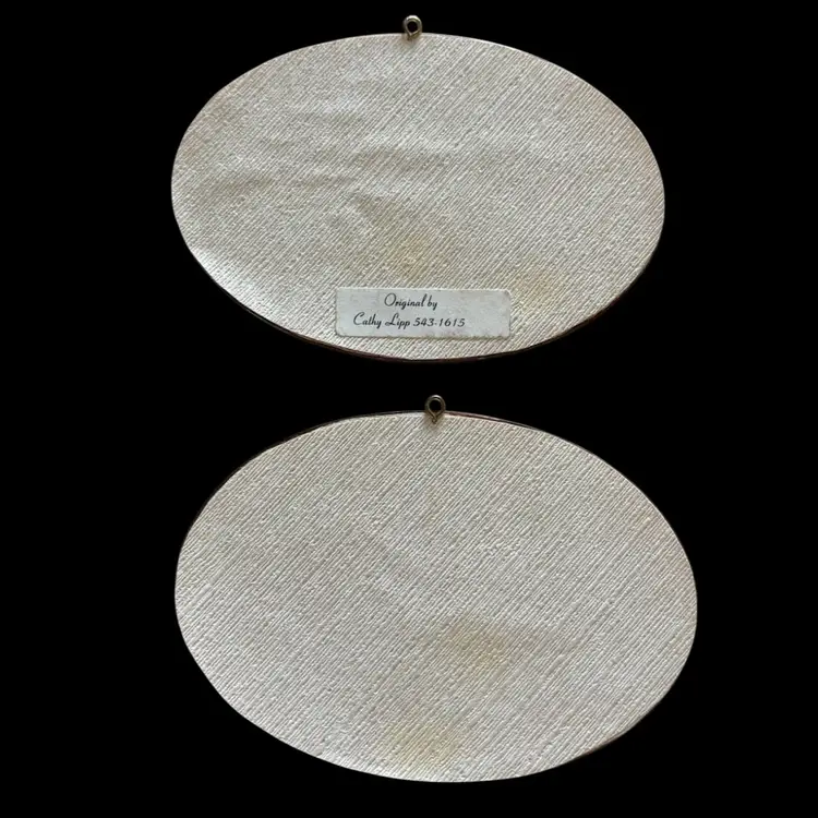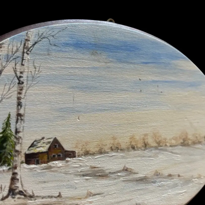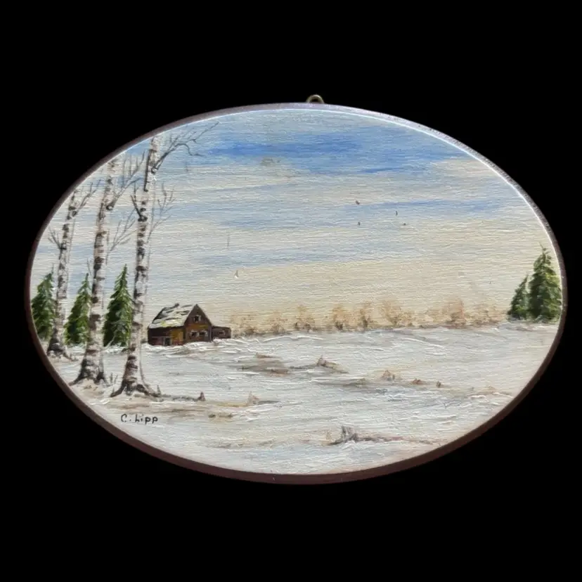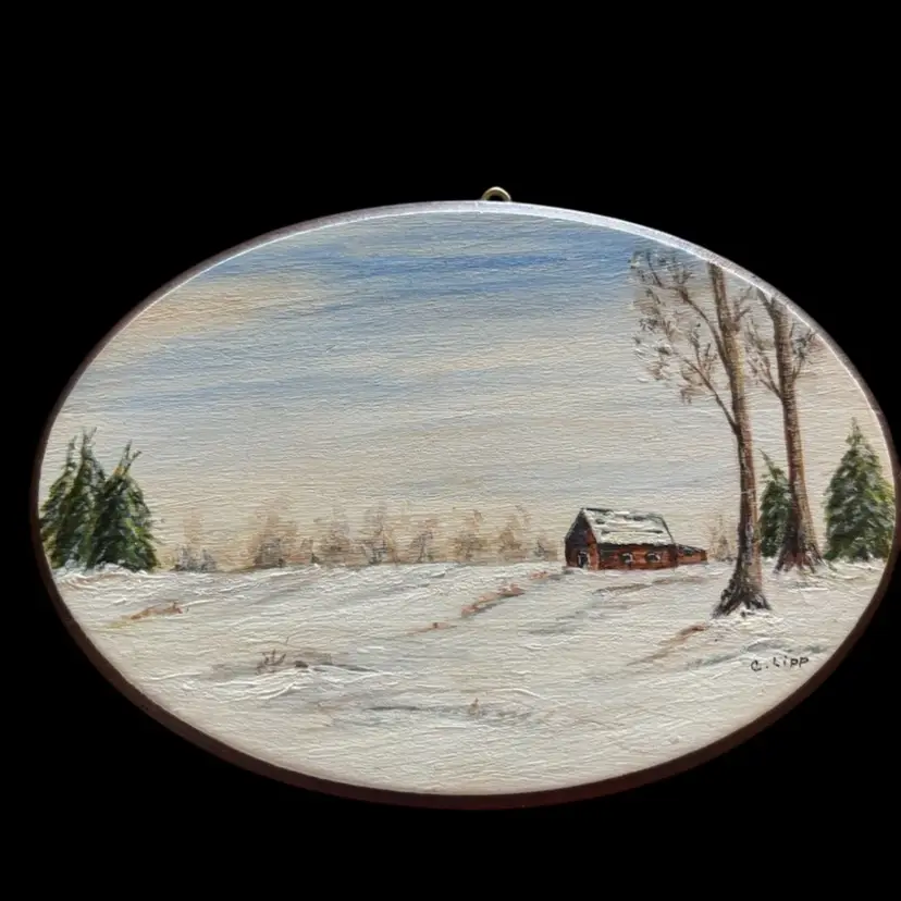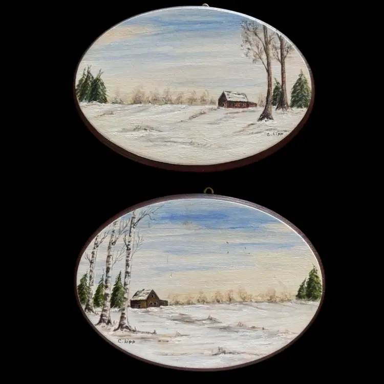 Perfect pairing for a gallery wall, original art pieces depicting a wonderful winter scene. In good condition, one has a small imperfection as seen in photo. 4.75x3.25”