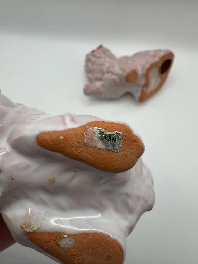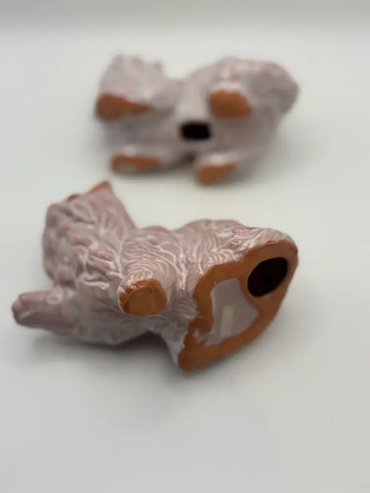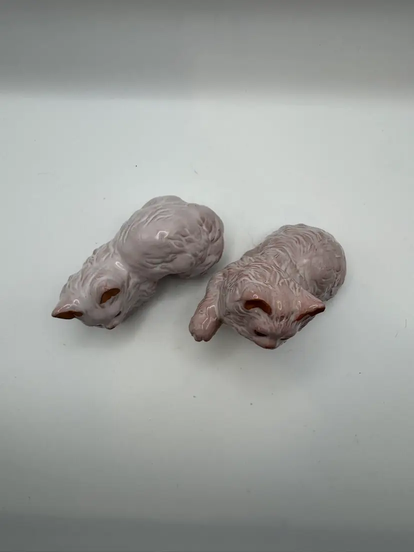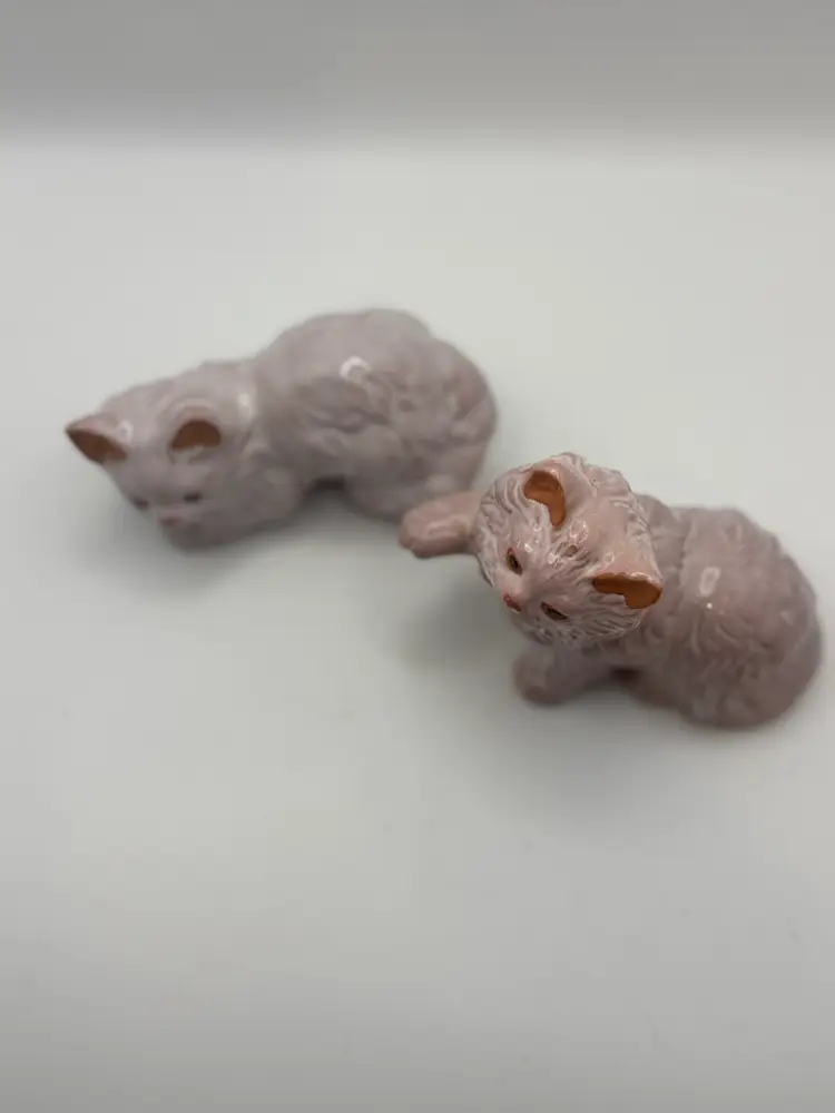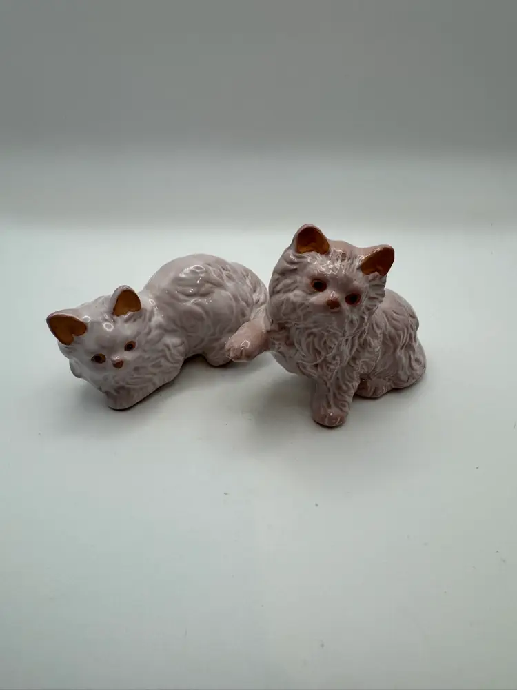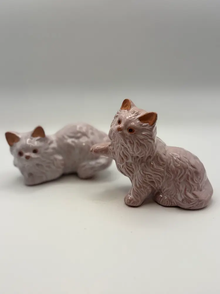Pair Of Red Ware Pink Glazed Kitty Figurines 4” Length; 3.5” H