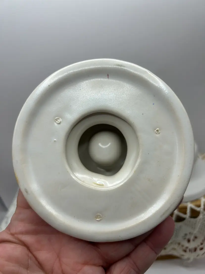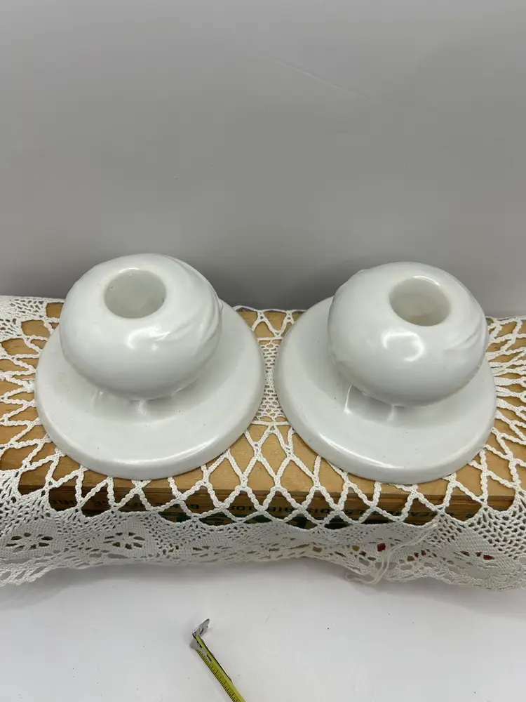 Pair Of Roseville Cream Pottery Candle Holders 2 1/2h 4”d