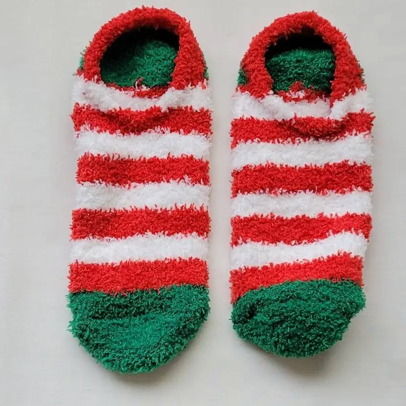 This pair of slippers are 8 in. long and 3 in. wide. They are stretchable. They are in like new condition as they've never been used. Material: terry cloth
