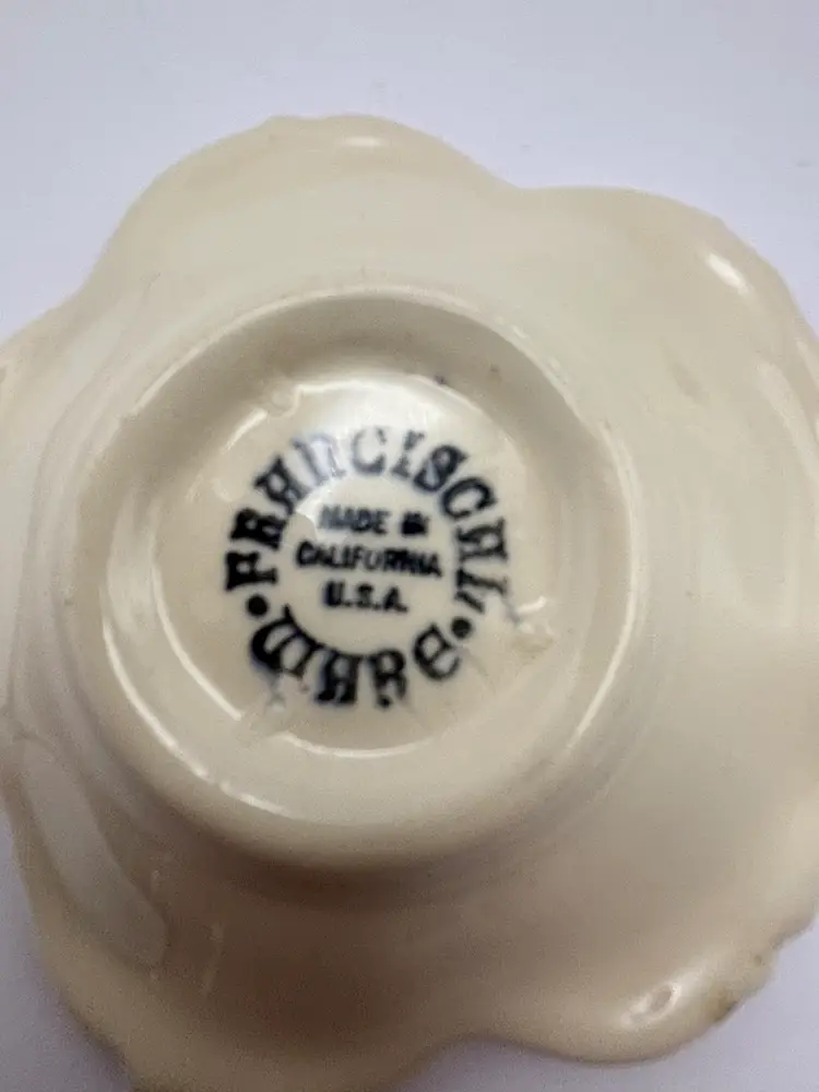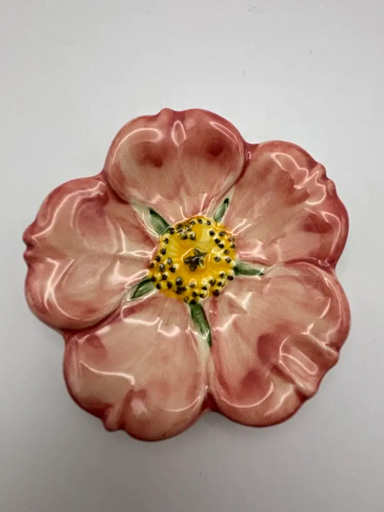 These little dishes can be used as butter pats, teabag holders or a little mint dish. They are from the famous Franciscan Ware Desert Rose collection. The stamp indicates that they are vintage California made Both do not have any chips or cracks 3-1/2” diameter
