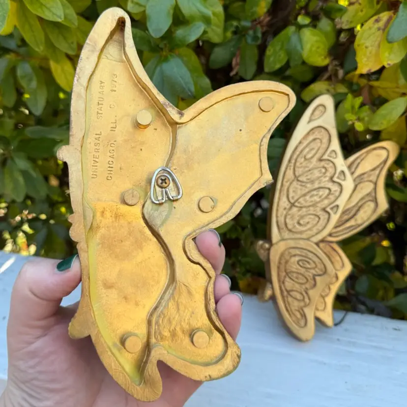 Very cute pair of plastic butterflies by Universal Statuary circa the 1970’s. They add a nice touch to any gallery wall. No flaws or damage.About 7.25in tall