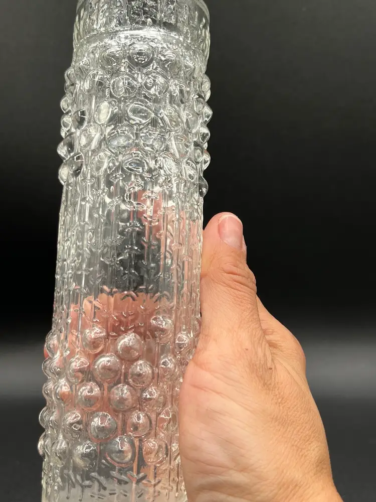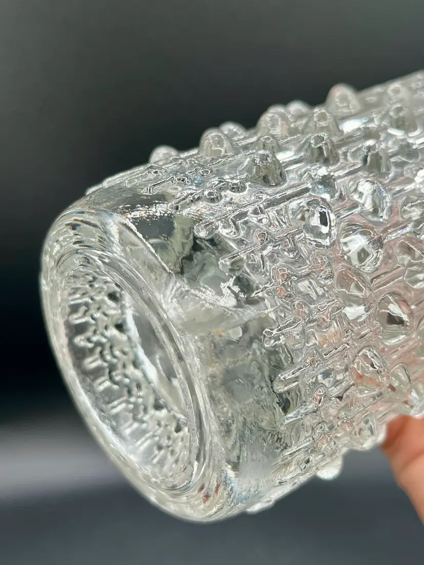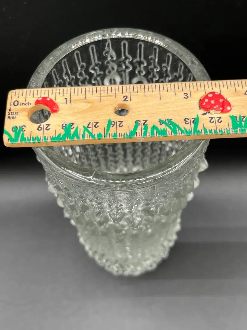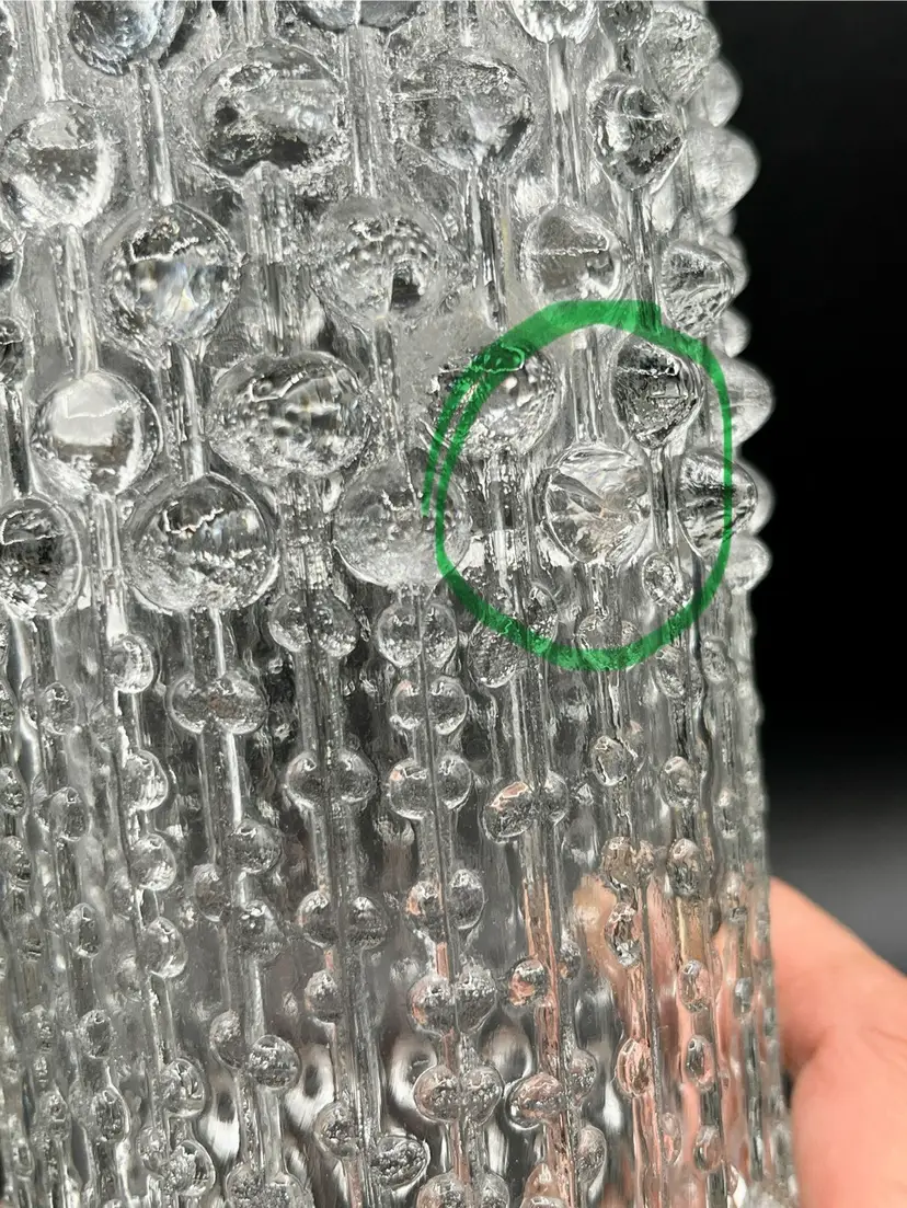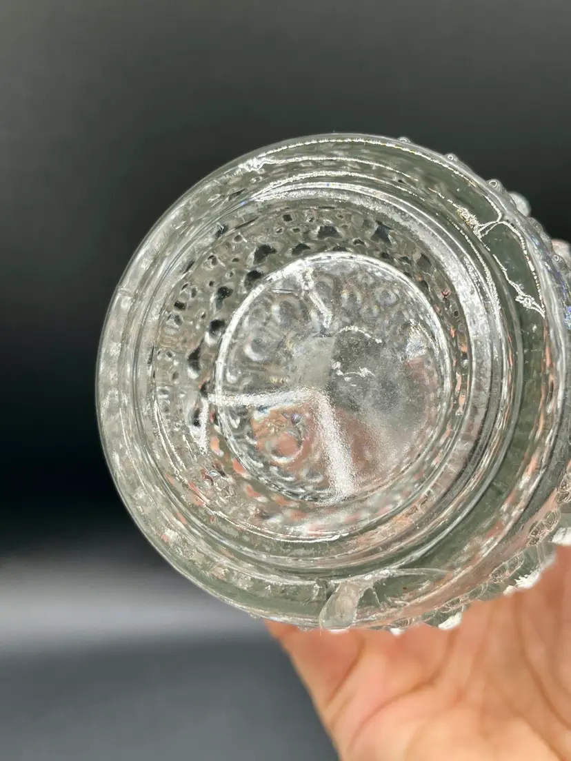 Big vase has a chip on one of the hobnail and a bruise at the bottom