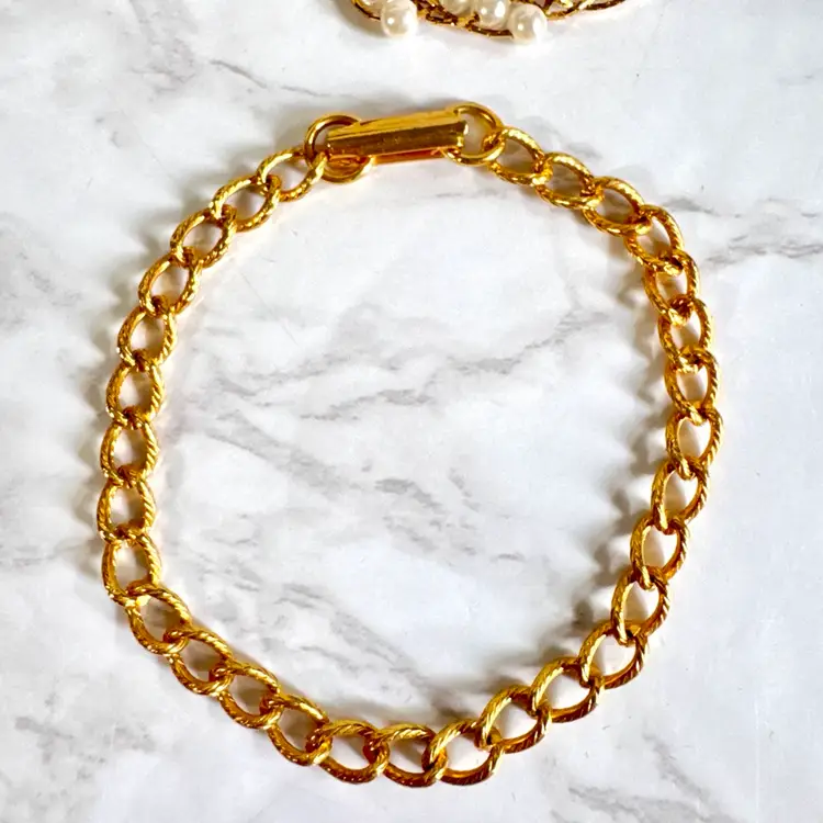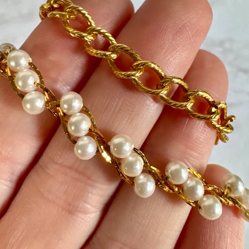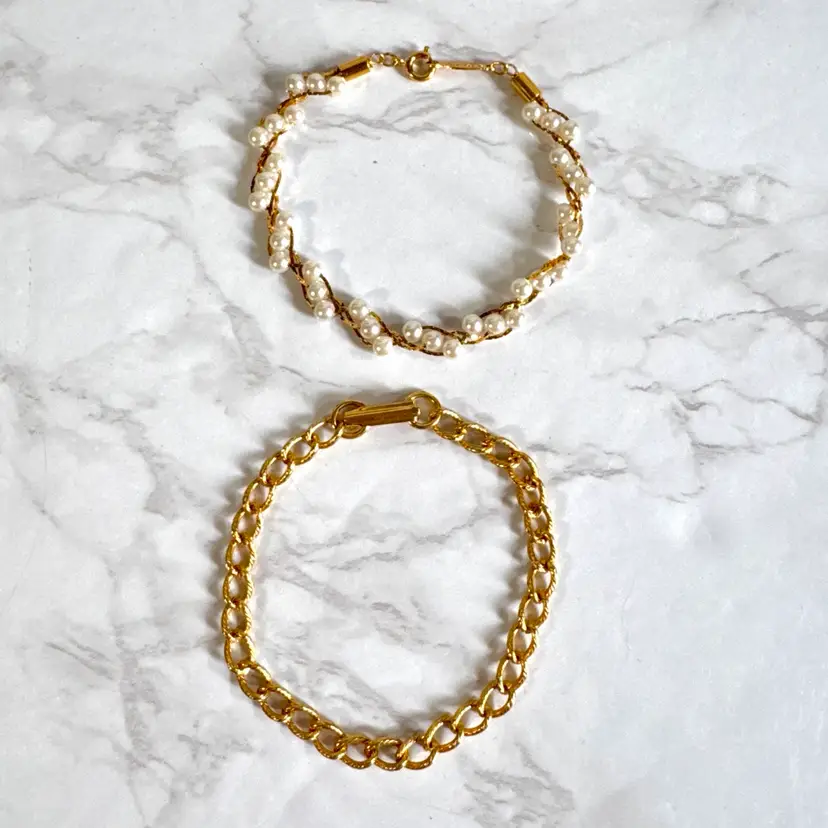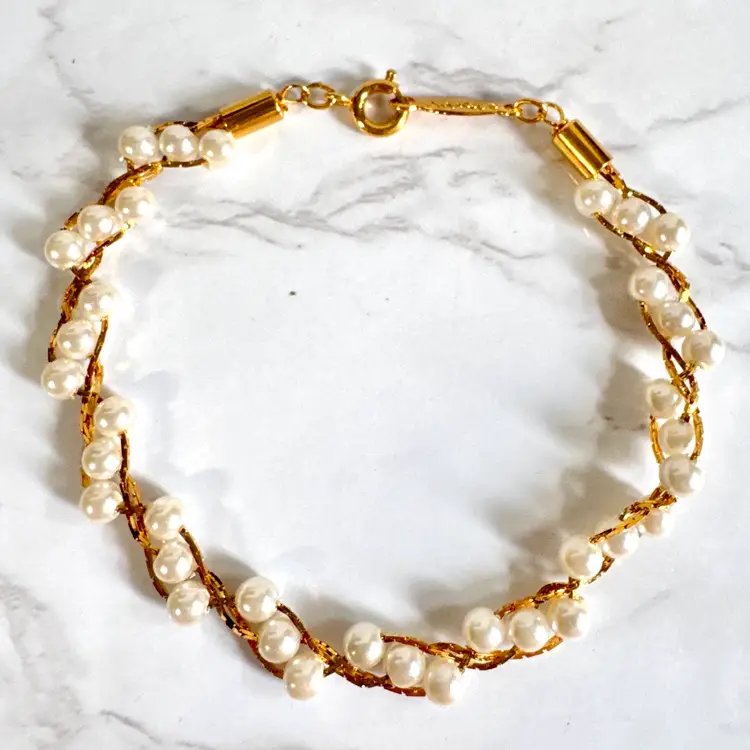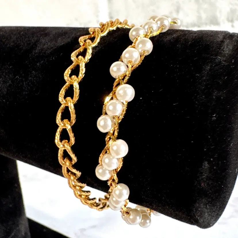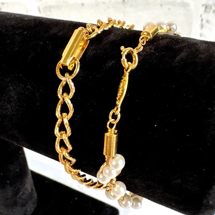 Good vintage condition. Faux pearl bracelet marked Napier. Other bracelet is unmarked. Both are about 7-1/4” long