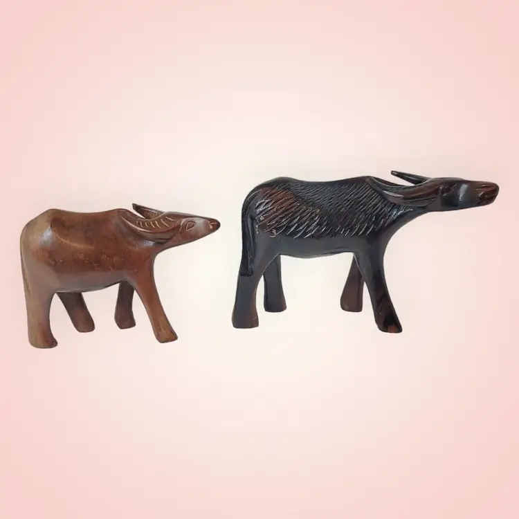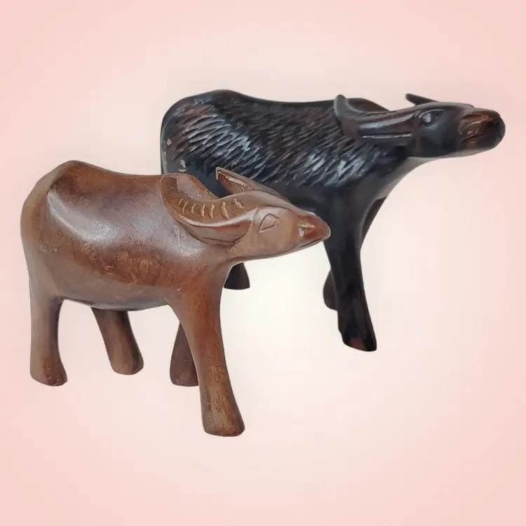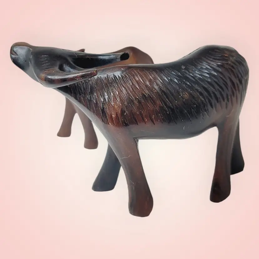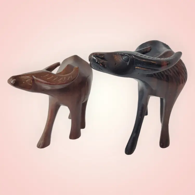 – Pattern: Asian – Occasion: All Occasions – Size: Small – Signed: No – Color: Black – Material: Wood – Subject: Buffalo – Brand: Unbranded – Department: Adults – Type: Wood Carving – Number in Pack: 2 – Style: Asian – Collection: Animals – Theme: Animals & Dinosaurs, Art, Wild Animals – Features: Carvings – Country/Region of Manufacture: Unknown – Production Technique: hand carved – Finish: Antique – Handmade: Yes