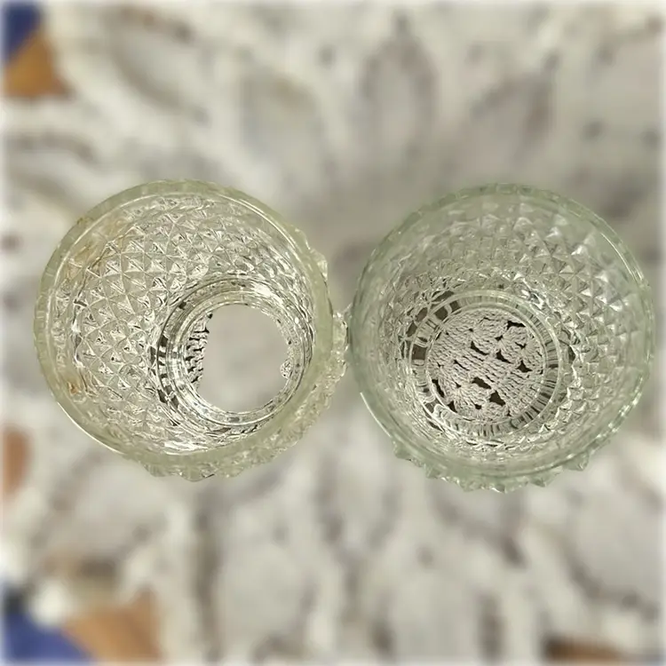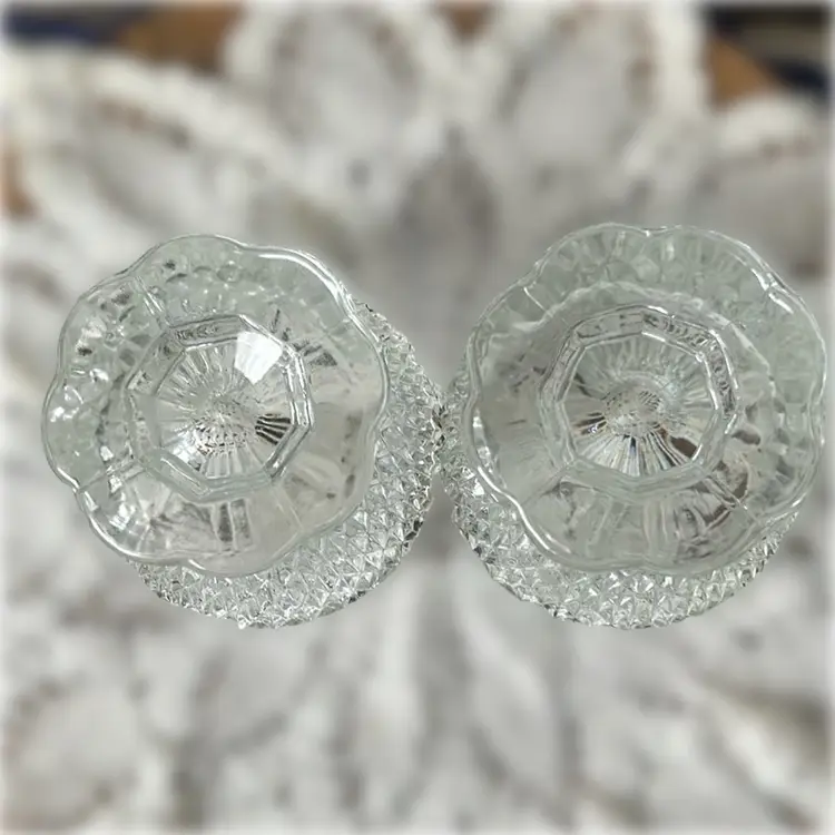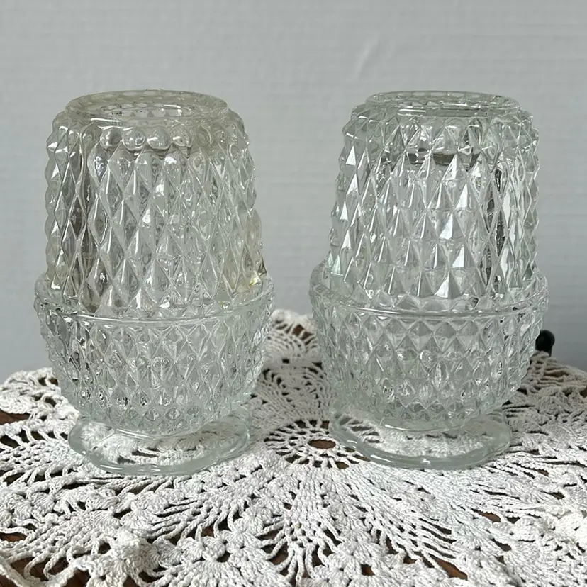 Both measure 5.25” tall by 3.50” across the middle of the base. No flaws in either one and produced in the 1970s