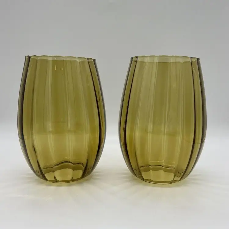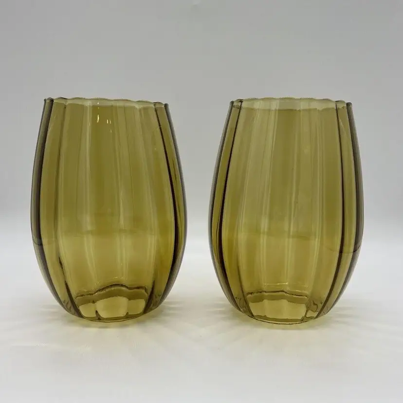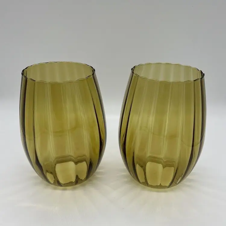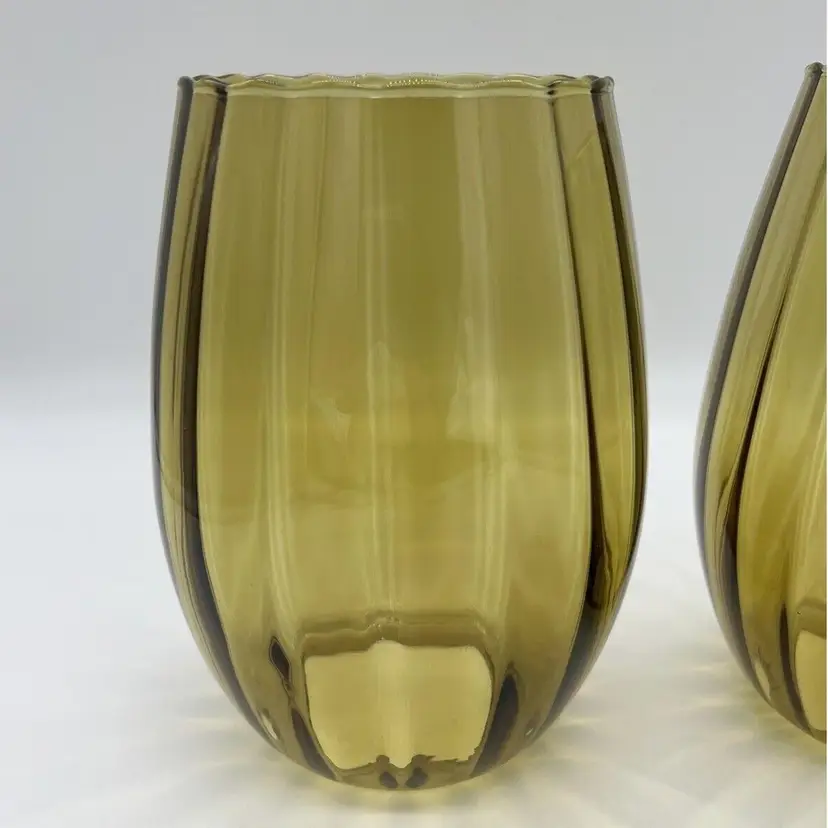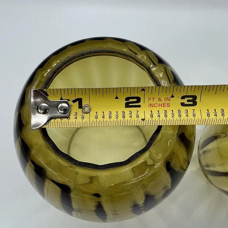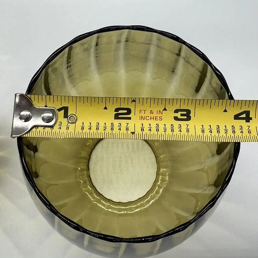 This pair of vintage Empoli glass shades is a beautiful addition to any home. The fluted optic pattern and olive green color give them a unique and retro look. Measuring 7 inches tall and 3 3/4 inches in diameter, these pendant shades are perfect for anyone looking to add some vintage charm to their living space. They are perfect for use with lamps, sconces, ceiling fixtures, pendant, swag lights, and hurricanes or lanterns. Whether you're looking for a statement piece or just something to complement your existing decor, these vintage shades are sure to impress. Great condition. One has a chip on the rim as pictured. No cracks.