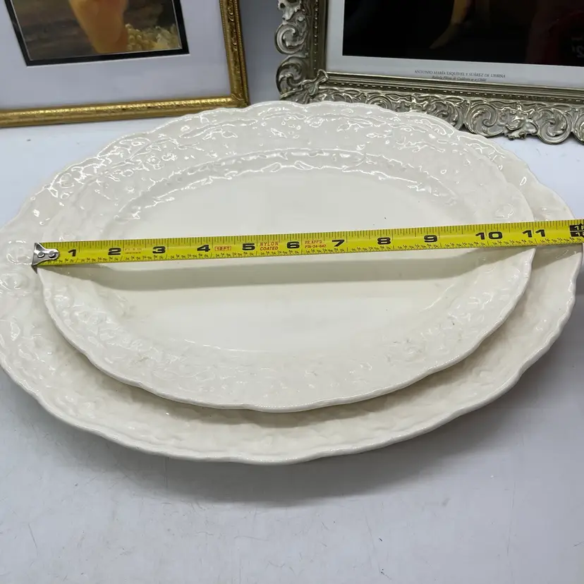 These are BEAUTIFUL perfect for rustic farmhouse. No chips or cracks the little one is 11” long the large is 13 1/2” they are perfection. Perfect for upcoming holidays!