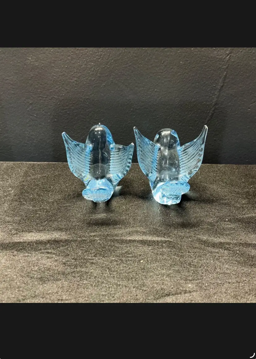 This is a charming pair of vintage Swedish art glass birds, hand-blown by Ryds Glasbruk of Sweden. Each bird is beautifully crafted in a soft, light blue glass with raised wings, perched as though in mid-song. One bird retains its original foil sticker marked “R Sweden”, confirming its origin. Ryds Glasbruk was a respected Swedish glassworks active during the mid-to-late 20th century, known for producing elegant decorative glass figures and animals with clean lines and a distinctly Scandinavian aesthetic. Their designs often emphasized simplicity, craftsmanship, and playful forms, making them highly collectible today. These birds make a perfect gift for a collector of Swedish, Scandinavian, or Mid-Century Modern glassware, or as a statement piece for a windowsill, display case, or minimalist decor.