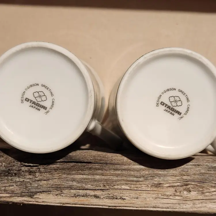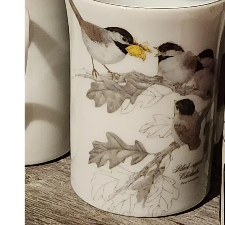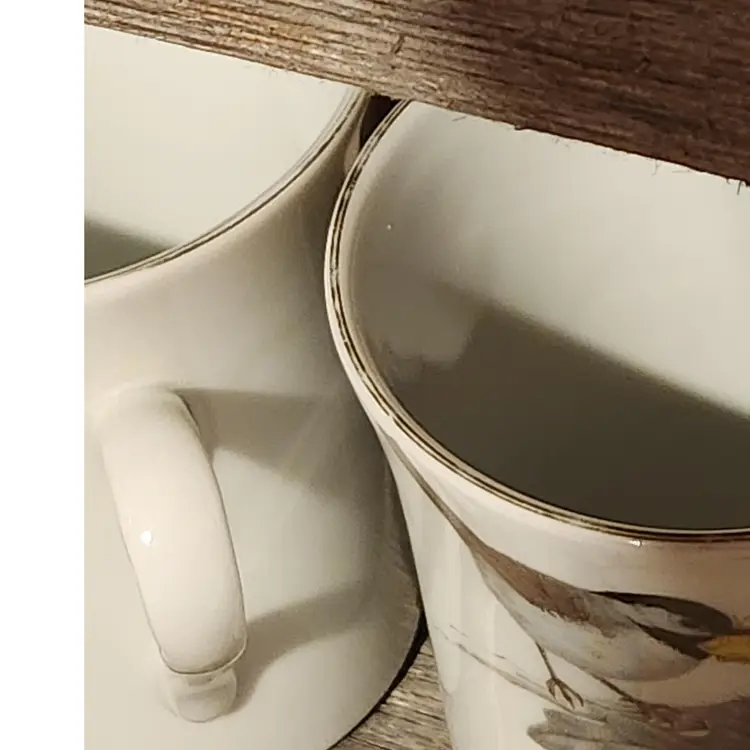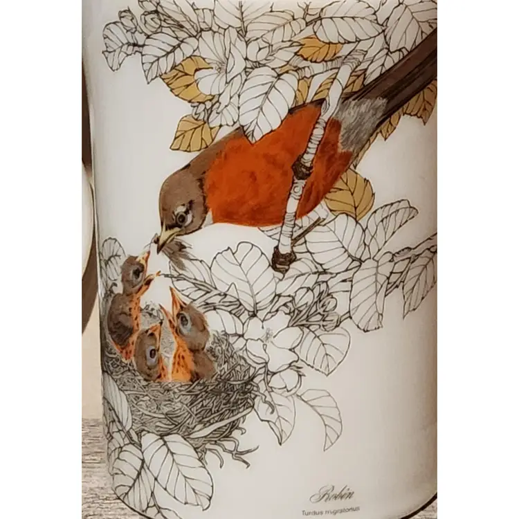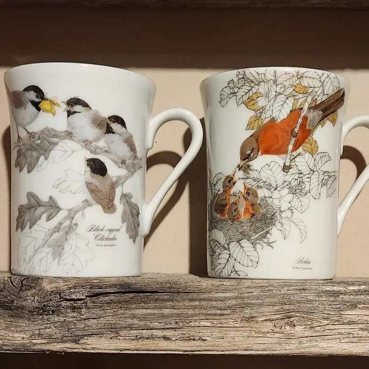 Standard sized mugs/cups have illustration-style graphics of sweet birdies feeding their babies. Great Mother's Day gift or addition to your bird, mug, Otagiri collection. Gold rims have wear, as shown in pics. LOVE THESE!