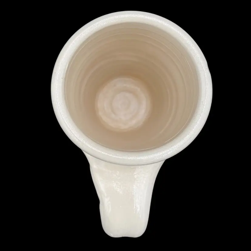 Dimensions: Larger Mug - 5.5 inches tall, 5 inches wide, 3 inches diameter Weight - 1 pound, 14.4 ounces Thinner Mug - 5.5 inches tall, 4.75 inches wide, 2.6 inches diameter Weight - 1 pound, 13.6 ounces