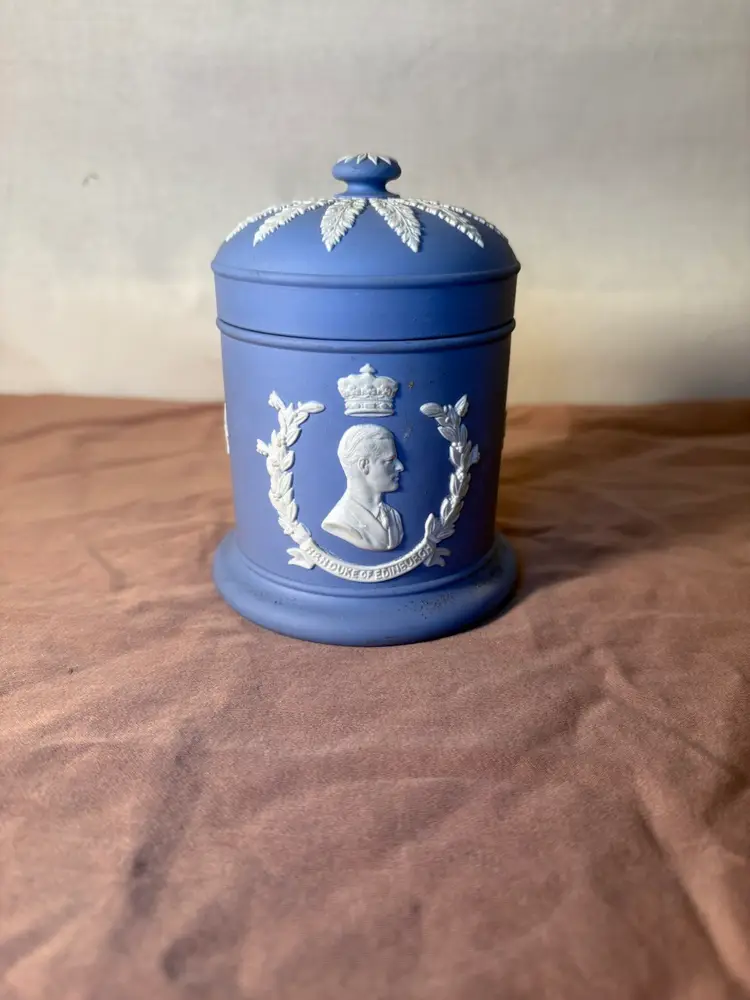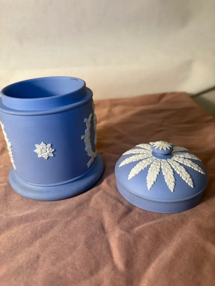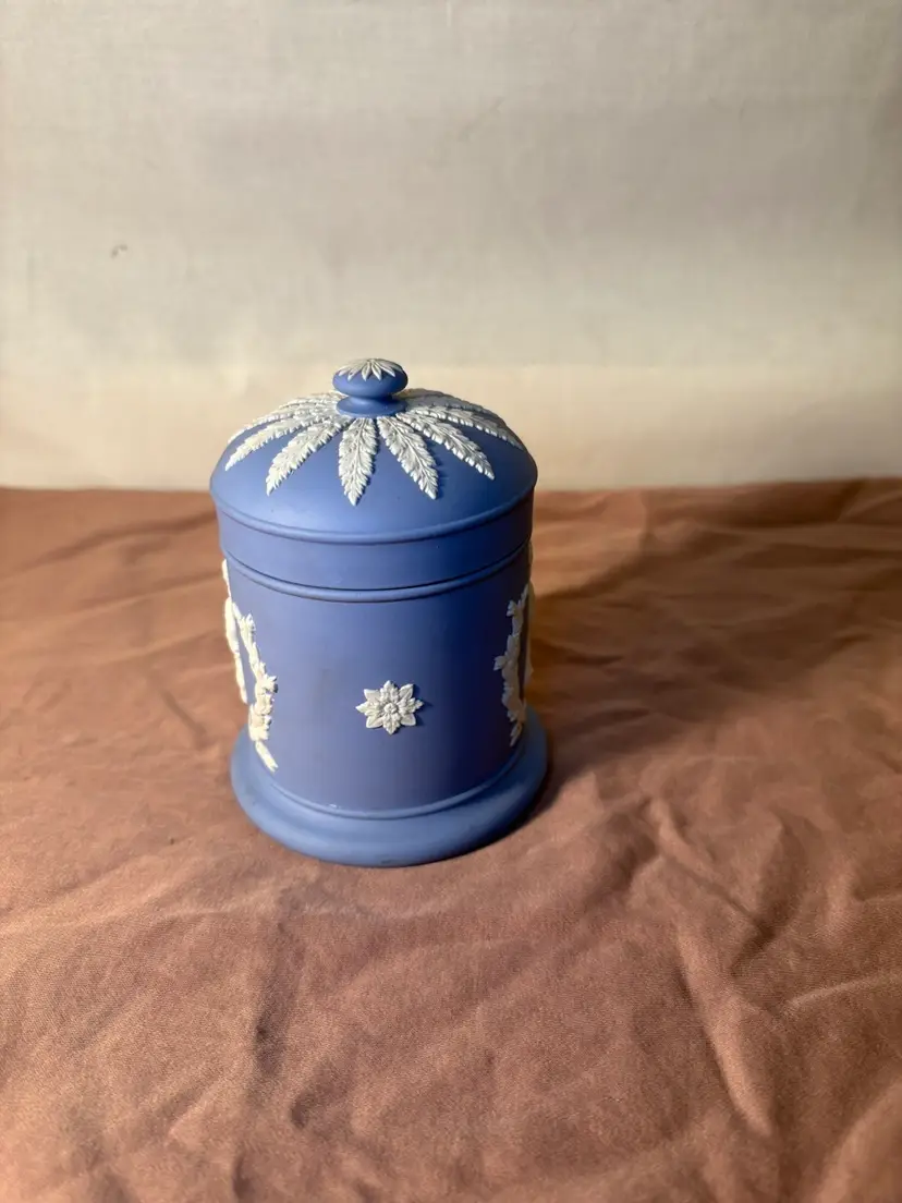 Pale blue coronation jar No chips no cracks Jar is 4.5 inches tall and 2.5 inches diameter