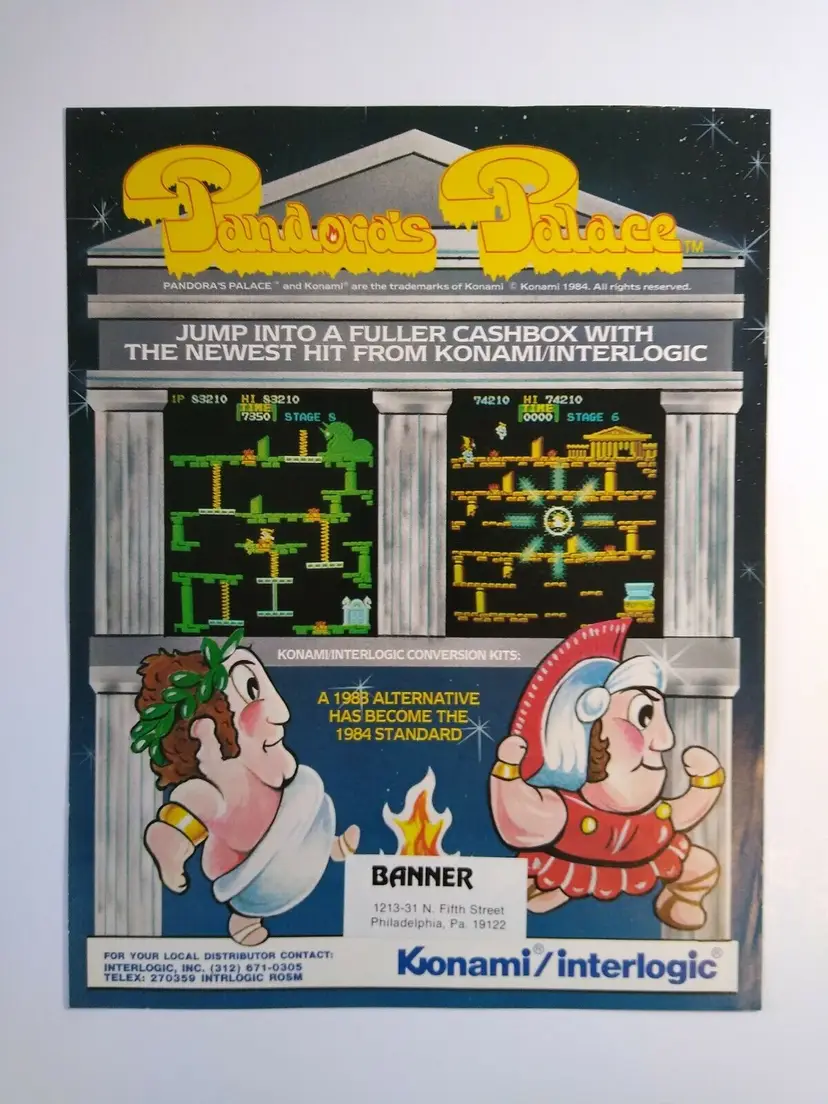 Arcade: Flyer Style: Retro Gaming Modified Item: No Country/Region of Manufacture: United States Original/Reproduction: Original Year: 1984 Game Title: Pandors Palace Brand: Konami