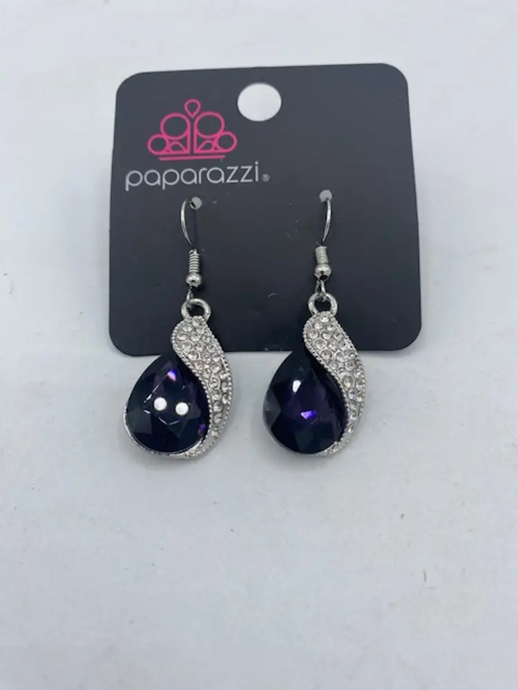 The Paparazzi Easy Elegance Purple Earrings are a stylish and elegant pair of dangle/drop earrings that add a touch of beauty to any outfit. Made with silver metal and featuring a hook closure, these earrings are perfect for adding a pop of color to your ensemble. The purple color of the main stone and the earrings themselves exude a fashionable and trendy vibe, making them a versatile accessory for any occasion. Signed by the brand Paparazzi, these earrings are a must-have for those who appreciate fashion jewelry that combines elegance and style.