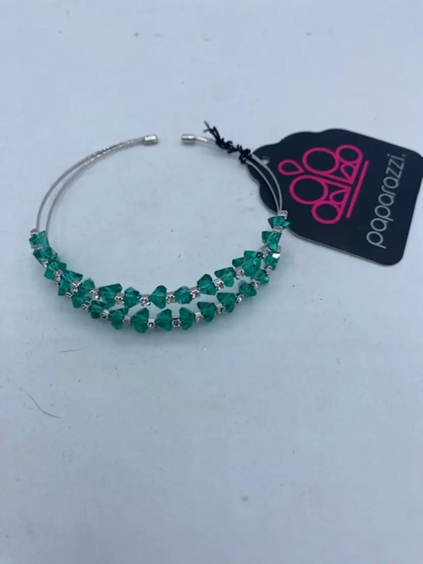 The Paparazzi Prismatic Posh Green Bracelet is a stylish and trendy piece of jewelry that features a cuff style design with a slide closure. This bracelet is customizable, allowing for a perfect fit, and the green color adds a vibrant touch to any outfit. Made by the popular brand Paparazzi, this bracelet is a fashionable accessory that is sure to make a statement. Perfect for those who love bold and eye-catching pieces, this bracelet is a great addition to any jewelry collection.