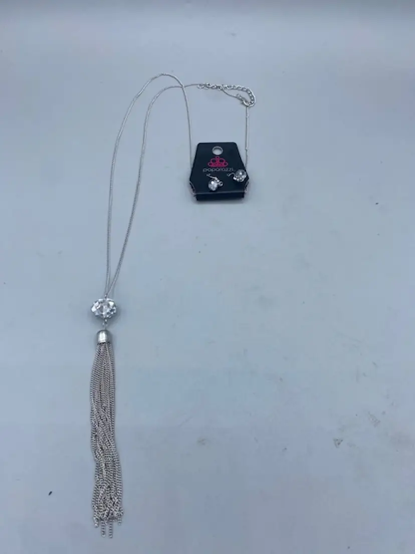 The Paparazzi Socialite of the Season Silver Necklace with Earrings is a stylish and elegant jewelry set perfect for any fashion-forward individual. The round pendant shape, lobster closure, and silver metal make it a versatile accessory that can be worn with a variety of outfits. The set includes a matching pair of earrings, adding a touch of glamour to the ensemble. With its beauty and fashion-forward design, this necklace is sure to become a go-to piece for any occasion. Made in China, this Paparazzi necklace is a must-have addition to any jewelry collection.