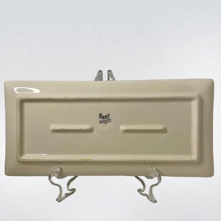 Condition: One small spec on the edge that appears to be missing glaze verses a chip. Two photos taken, side view and distance.