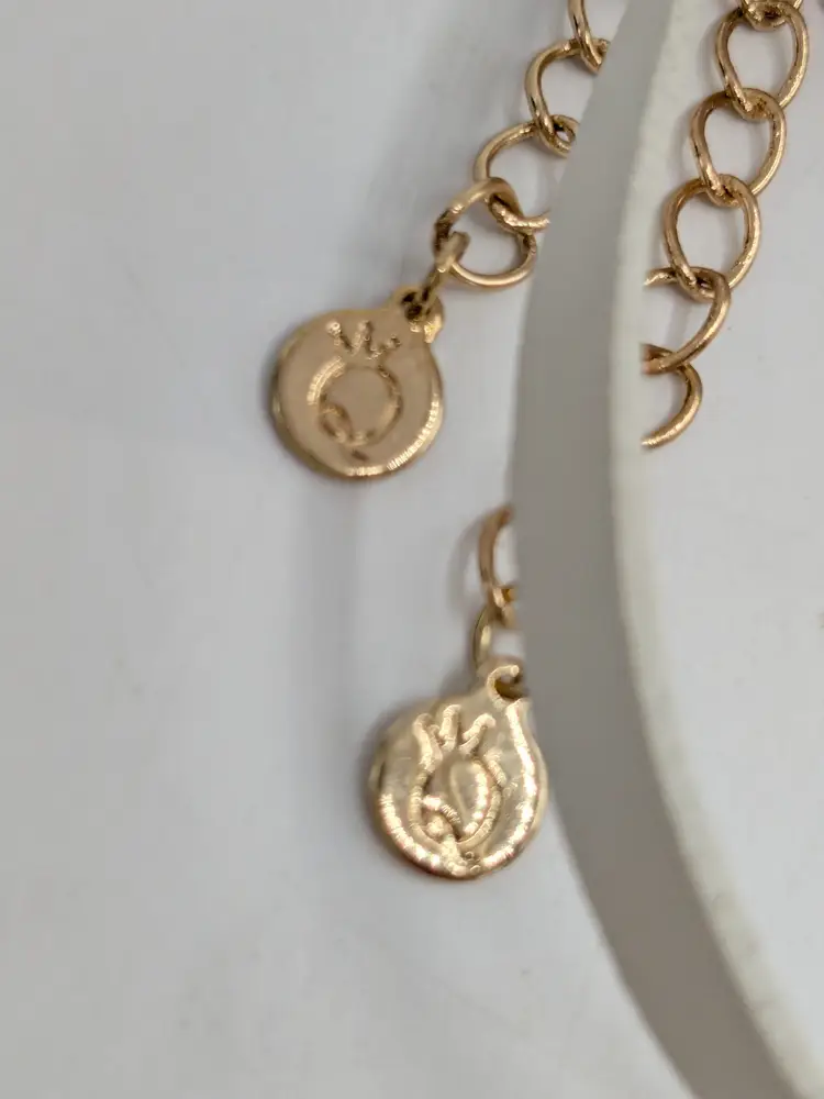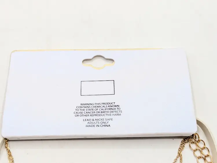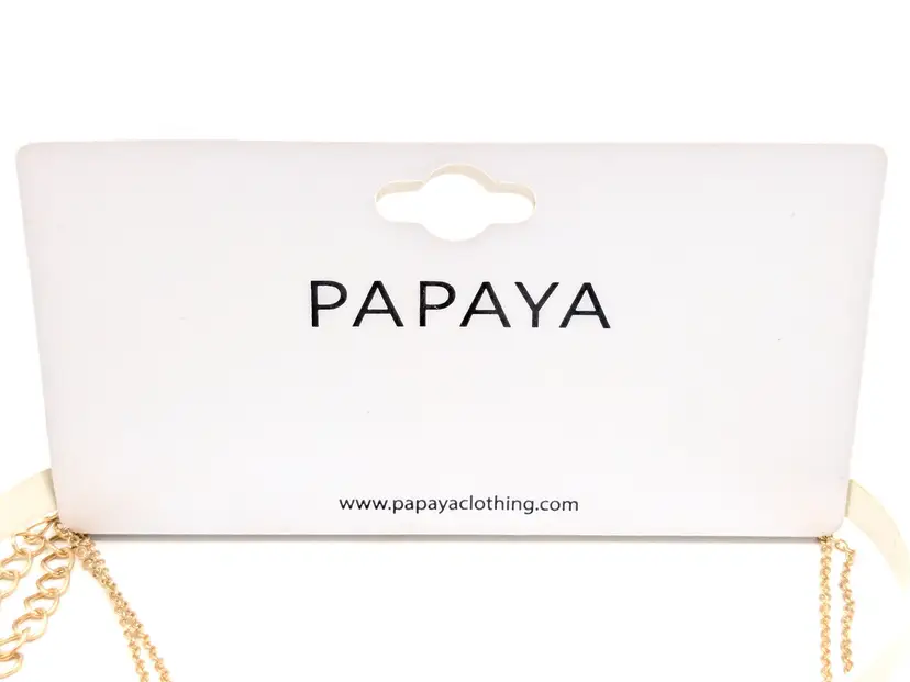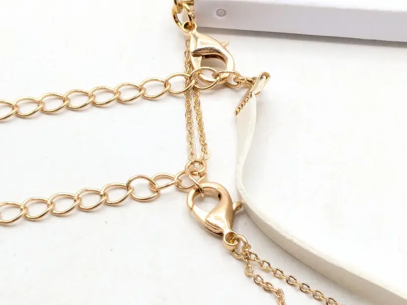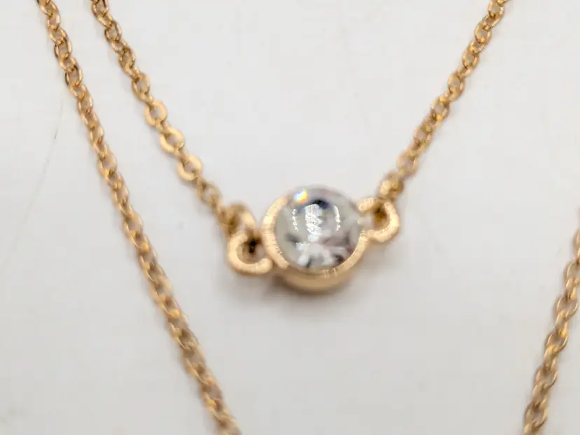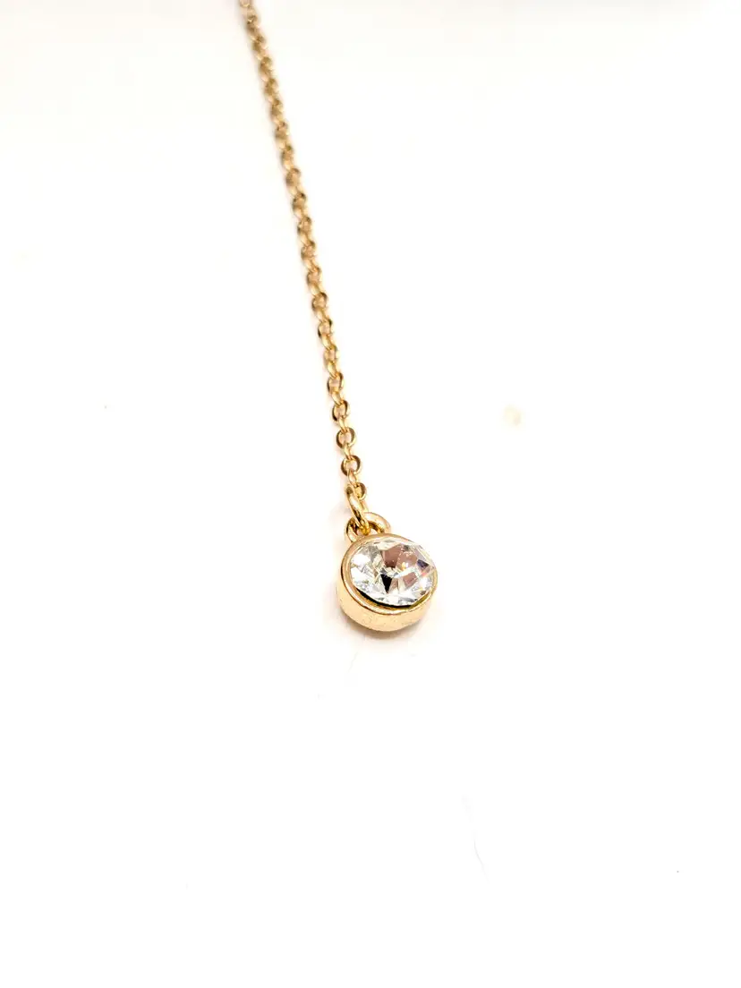 Good condition. New with tags. Features a chic layered design with striking faceted rhinestones. Set includes 2 separate necklaces. Faux leather white choker measures 13" with a 4" extender and a 1/4" wide. Chain necklace is 14"-16" with a 4" extender. Drop is 11". wen