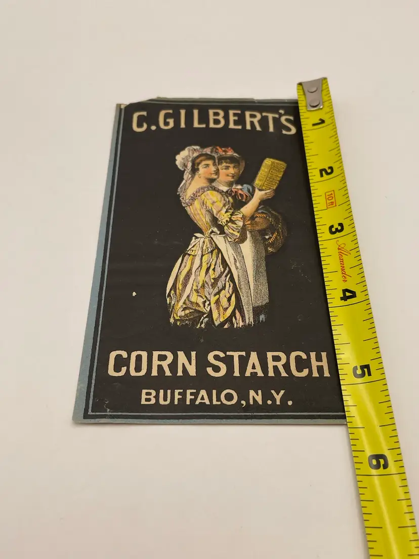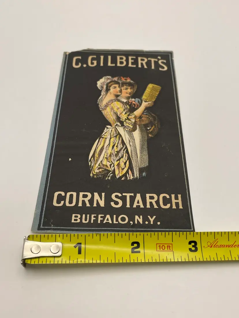 Paper Label For C. Gilbert’s Corn Starch, Buffalo, N.Y., 1800’s (Wear due to age, as shown) Please see pictures for measurements.