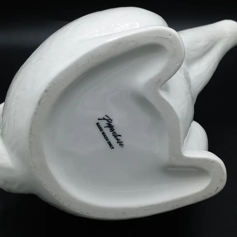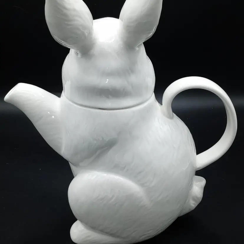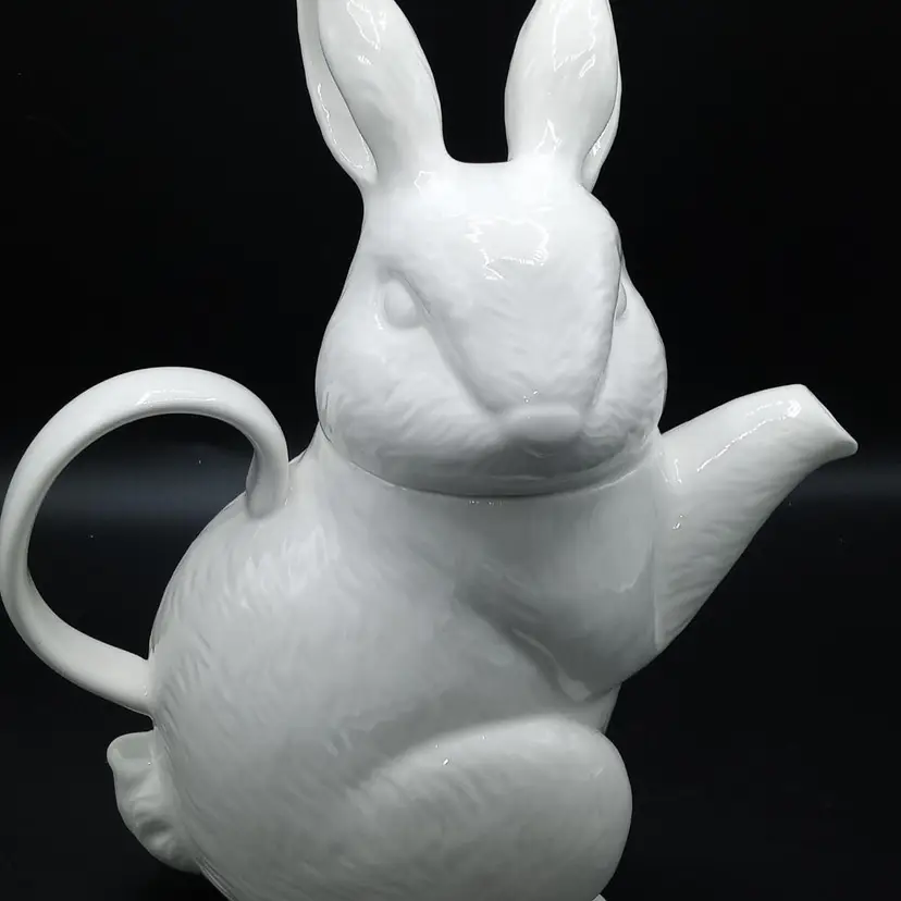 Brilliant white rabbit teapot is in good condtion with no chips or cracks. 10" in height from ear to bottom and 9" wide from spout to handle. Stamped on bottom is Paperchase Hand wash only.