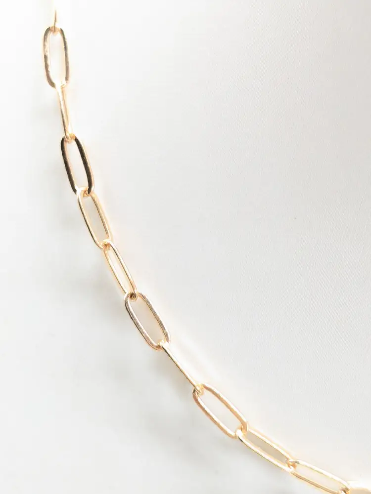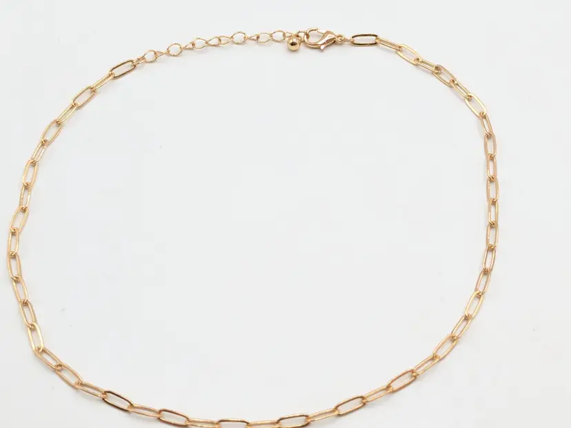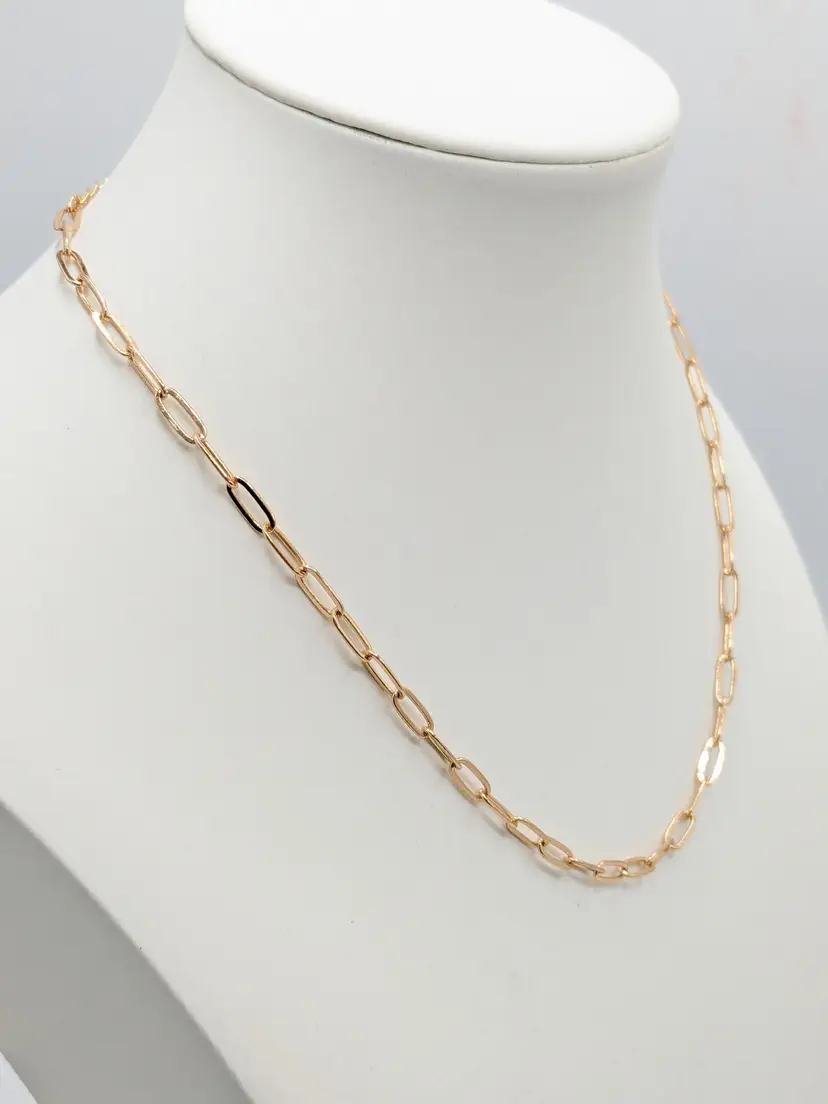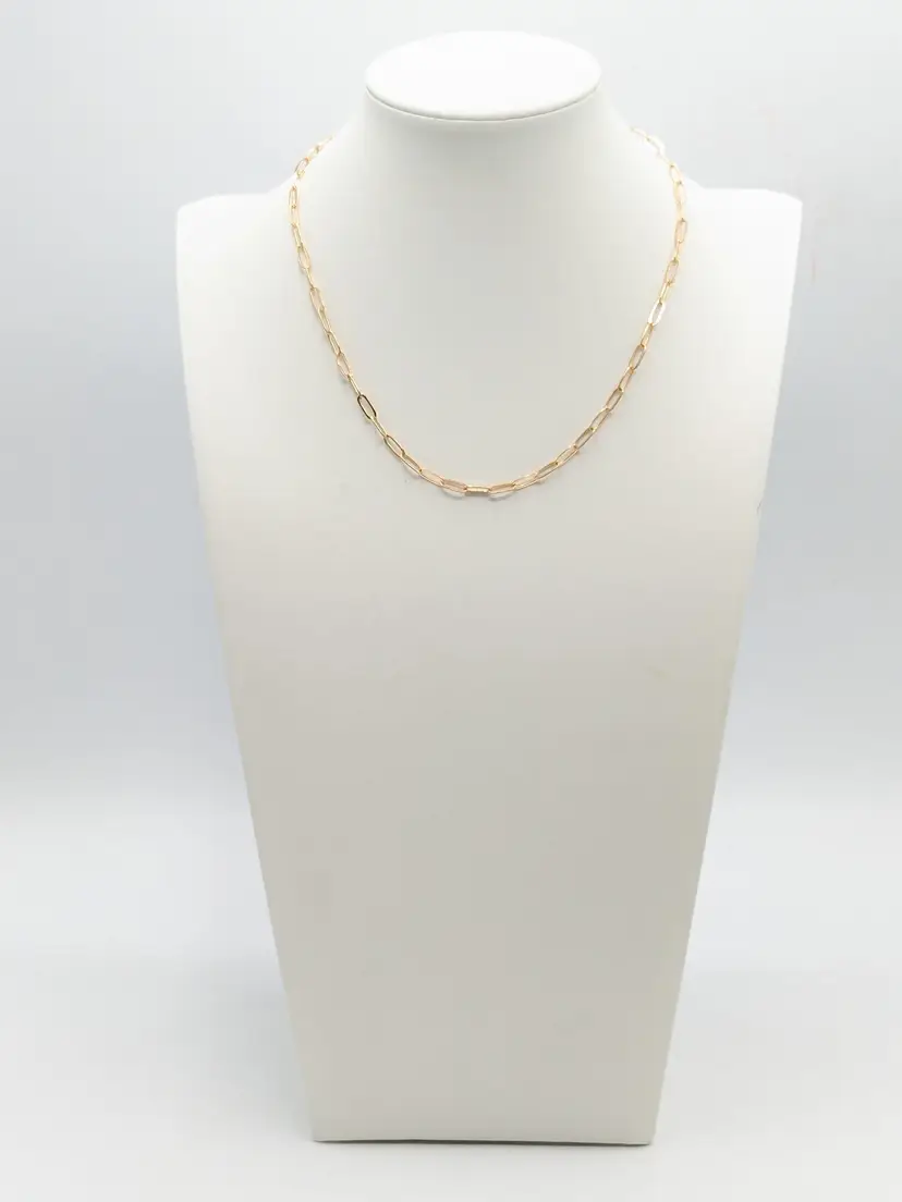 Elegant necklace featuring a gold-tone paperclip chain design. Measures 14" in length with a 2" extension. Perfect for layering or wearing solo for a minimalist look. Good condition. (EN1)