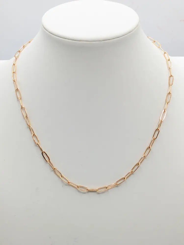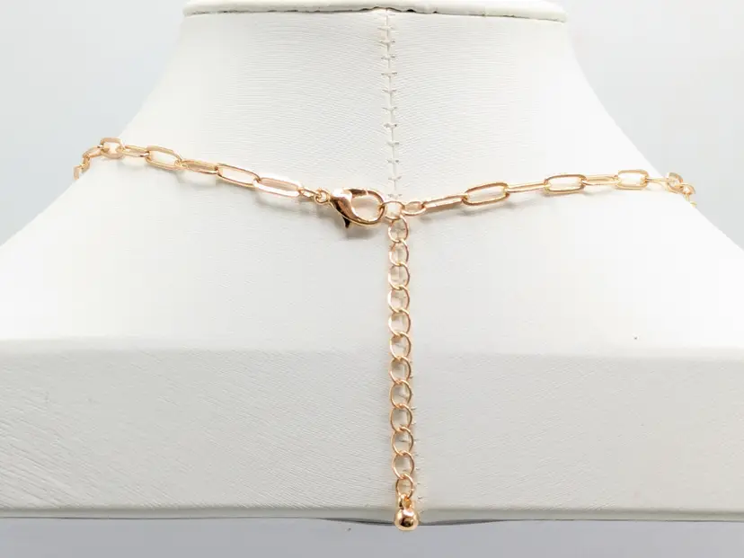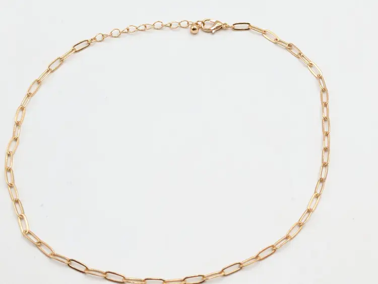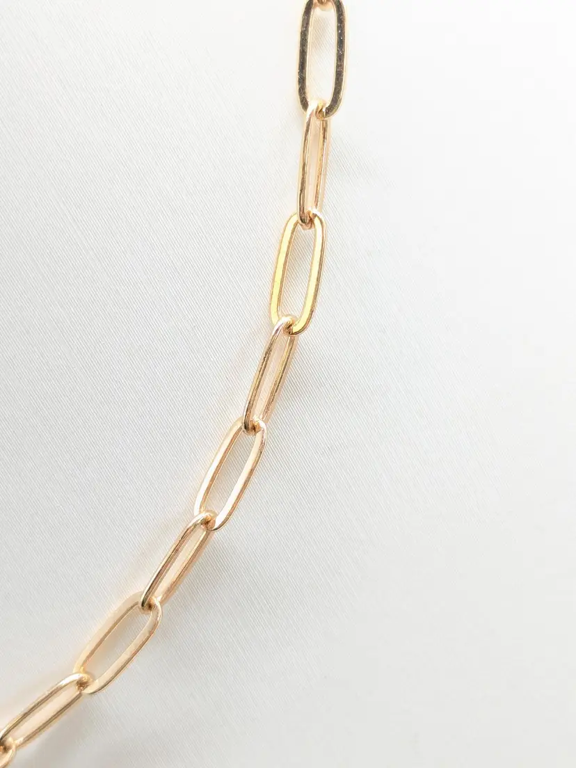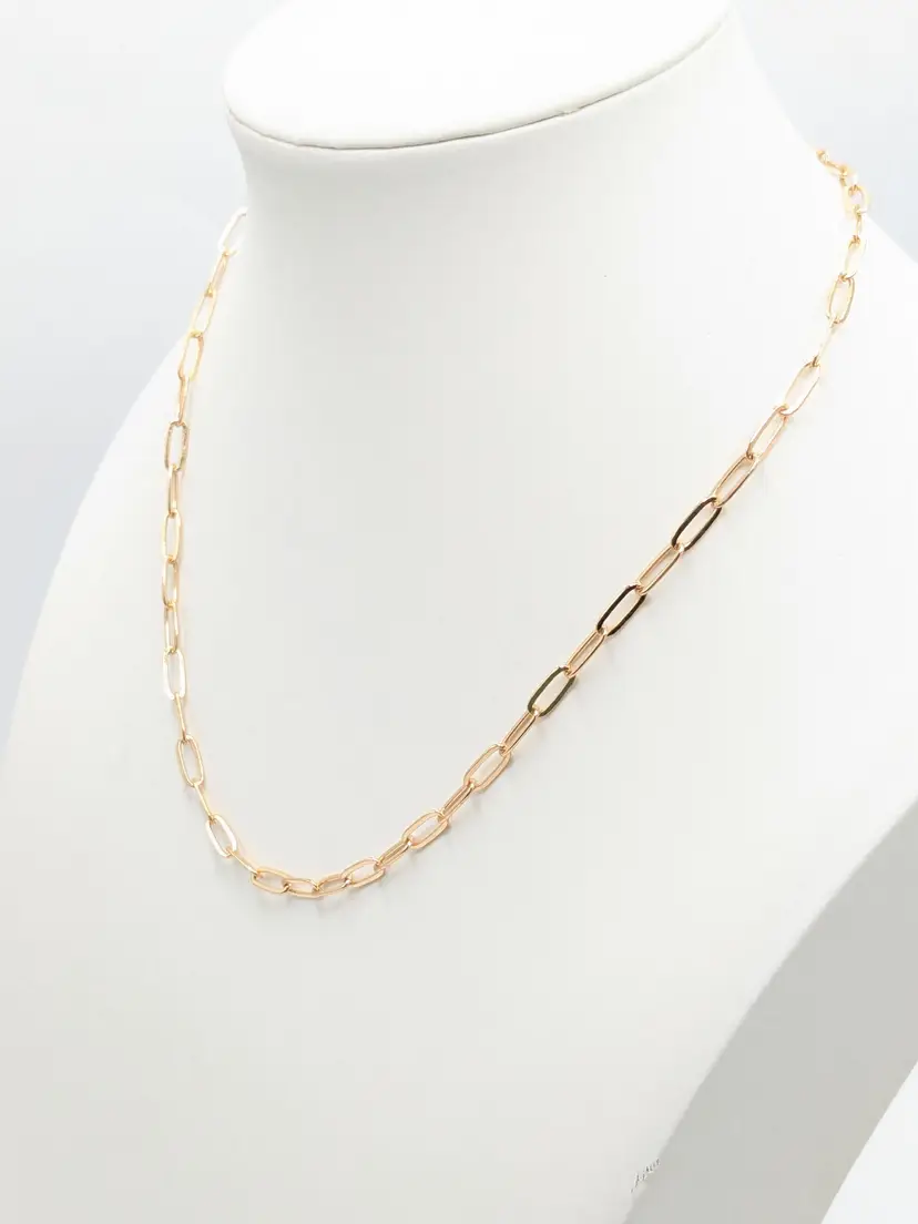 Elegant necklace featuring a gold-tone paperclip chain design. Measures 14" in length with a 2" extension. Perfect for layering or wearing solo for a minimalist look. Good condition. (EN1)