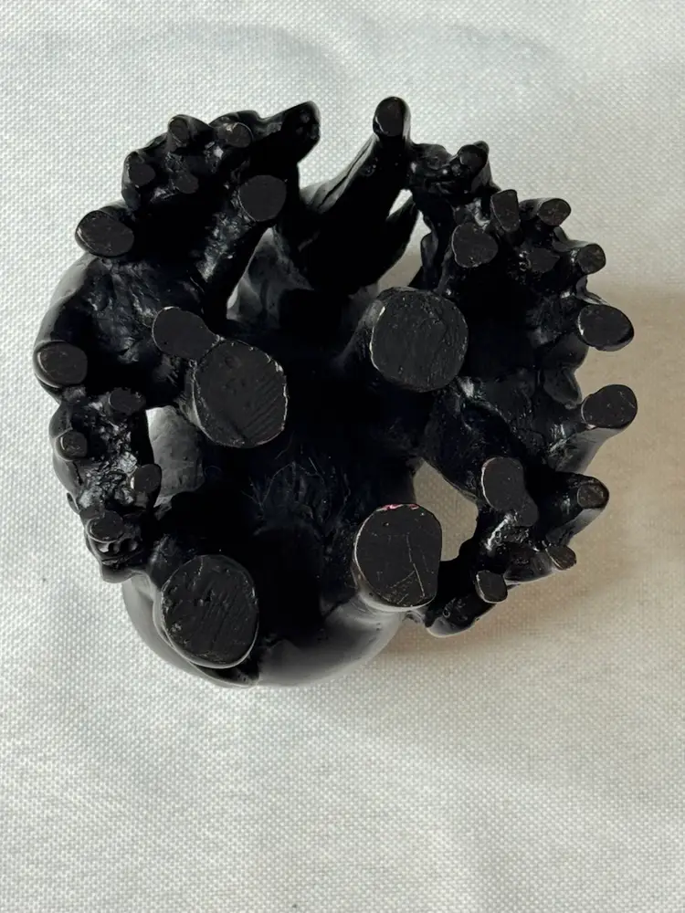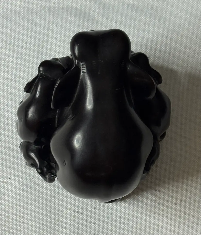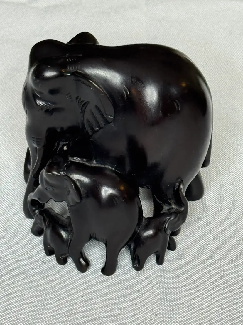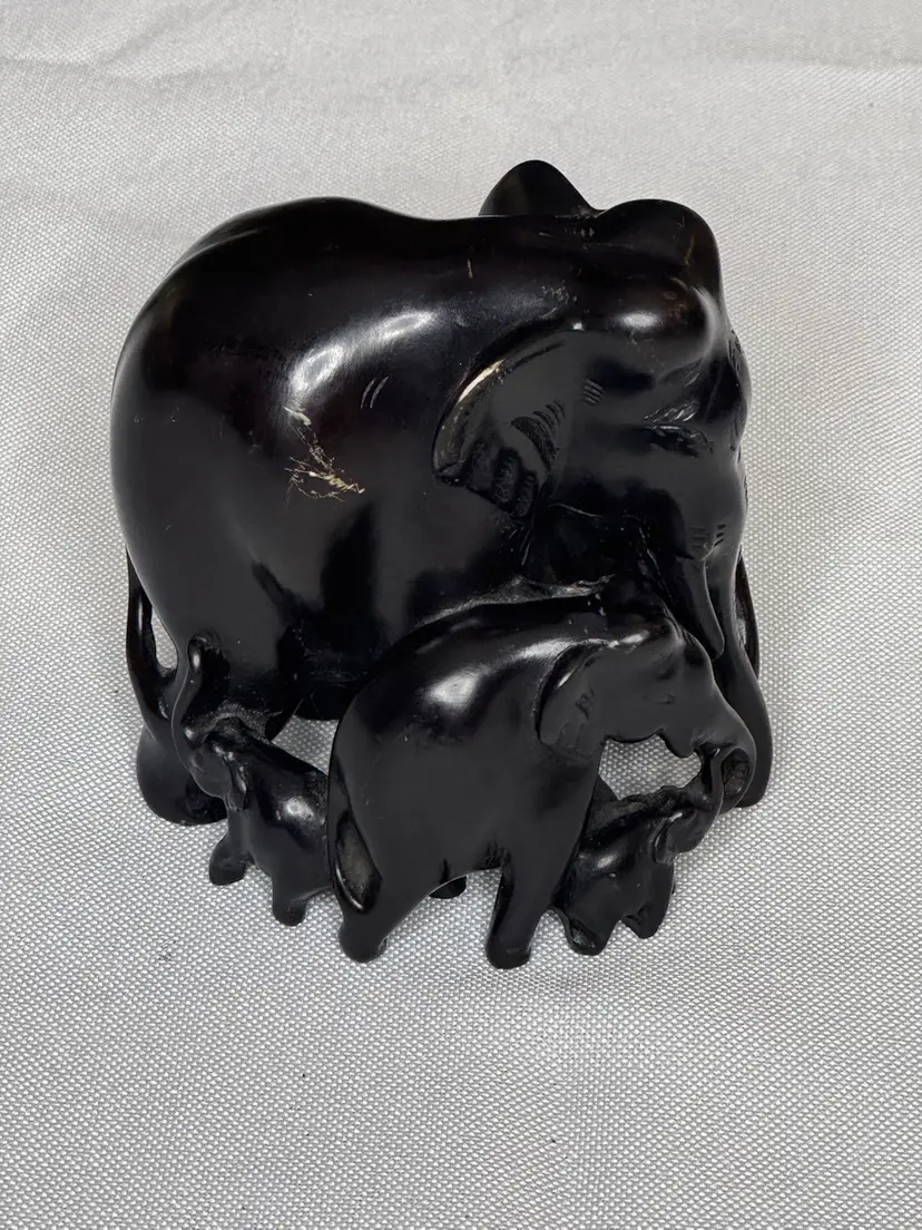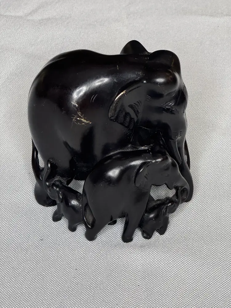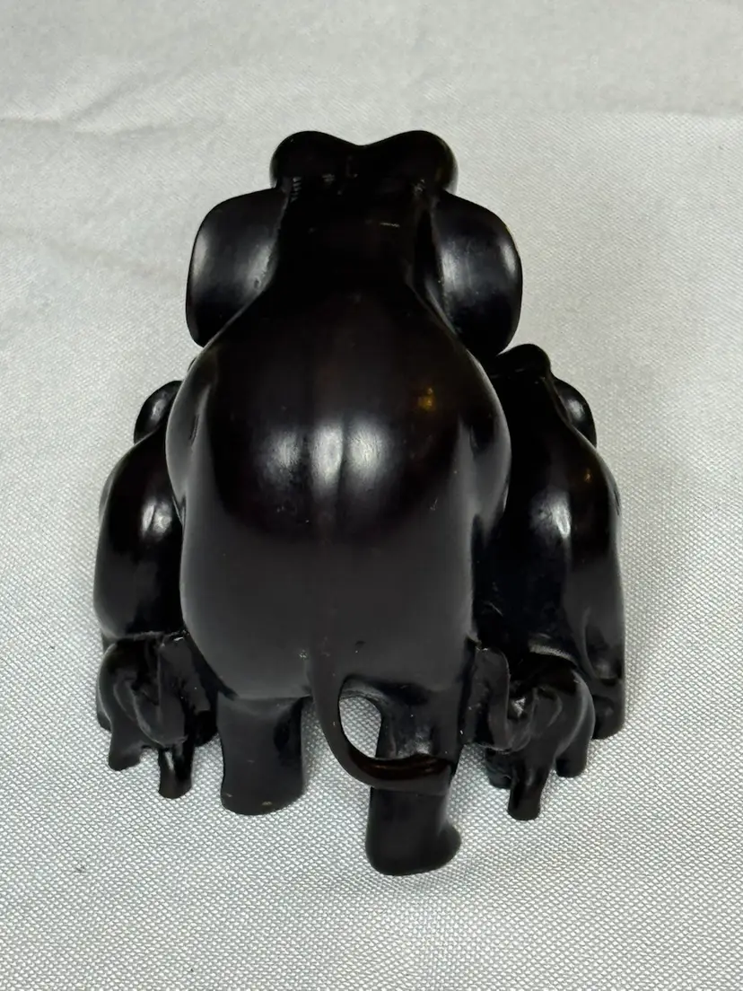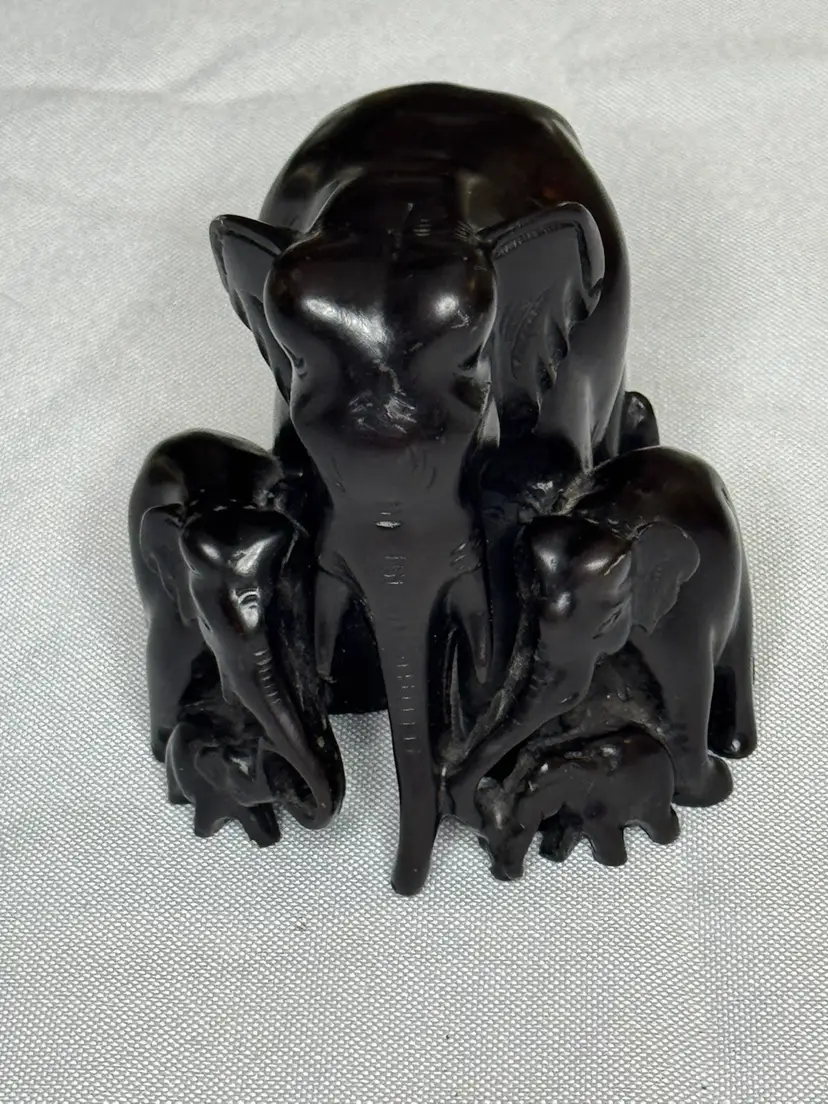 This elephant family paperweight is made of resin or similar material. It features one large elephant surrounded by 6 smaller elephants of various sizes. There are a couple of minor scratches on the left side of the larger elephant. It is 4” tall and 3.5” L x 3.5” W. A lovely portrayal of an elephant family emphasizing strong bonds, love, and unity within a family.