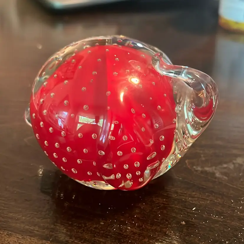 2” glass art elephant with bubbles. First picture looks like a crack but it’s not, though may be internal