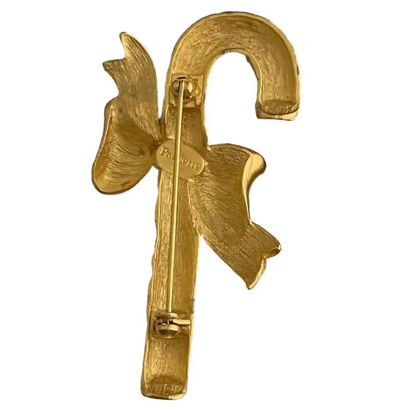 This is a VINTAGE SIGNED PAQUETTE CANDY CANE SILVER & GOLD TONE BROOCH.
