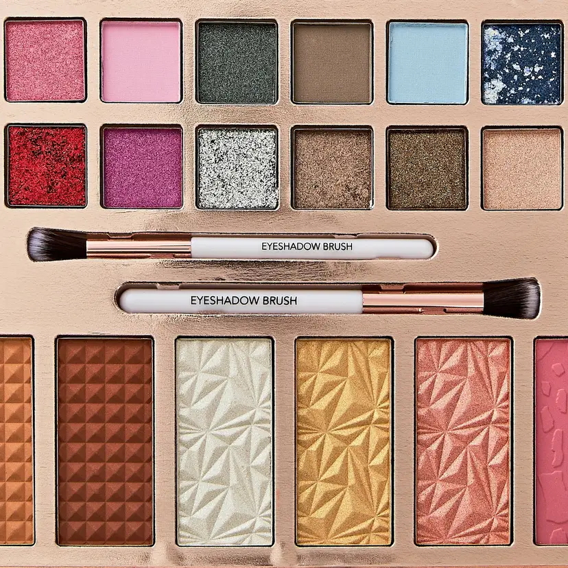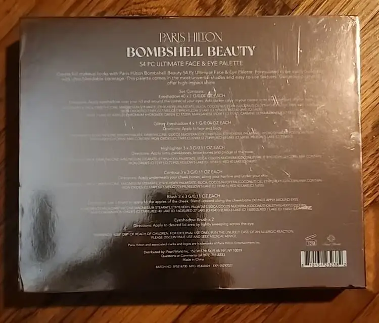 Paris Hilton Bombshell Beauty 54-Piece Ultimate Face & Eye Palette Comprehensive set with 54 pieces to create full makeup looks Easily buildable formulation for versatile application Ultra-blendable coverage for smooth and seamless blending Universal shades that complement a wide range of skin tones Easy-to-use textures designed for effortless application High-impact shine with gorgeous pigment Includes 40 eyeshadow colors, 4 glitter eyeshadows, 3 highlighters, 3 contours, 2 blushes, and 2 eyeshadow brushes Expires 12 Months after opening XUK0X