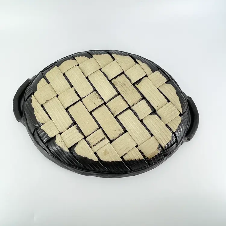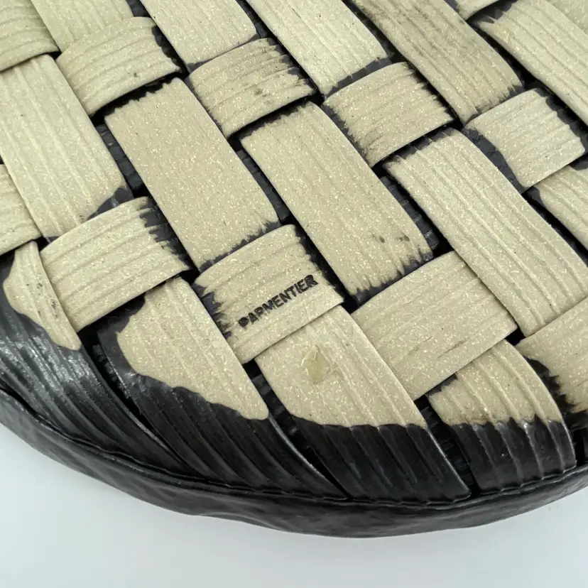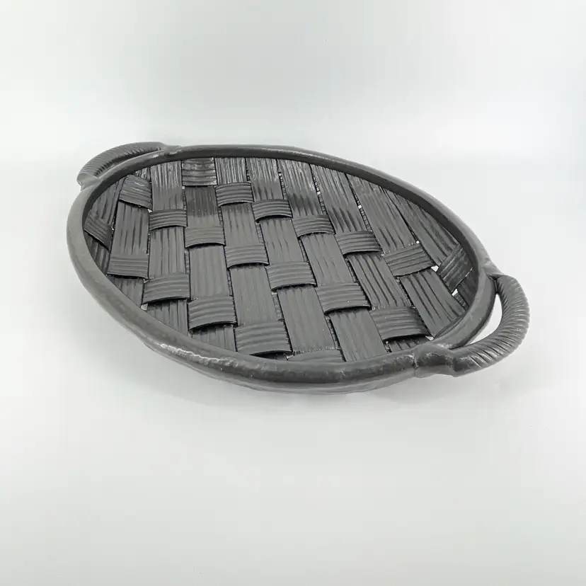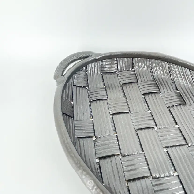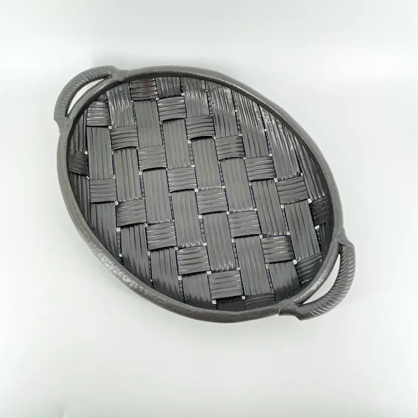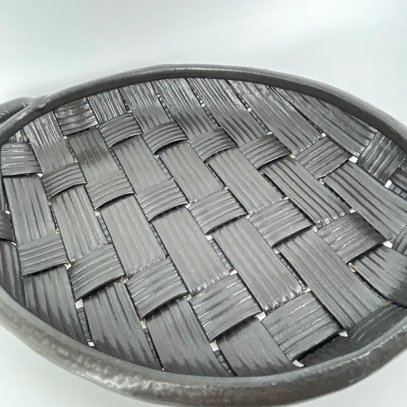 It is hand painted a slate color. It is 2" tall and measures 16.5"x11.5". It is in excellent condition. There are no cracks, breaks, chips or repairs. (See photos).