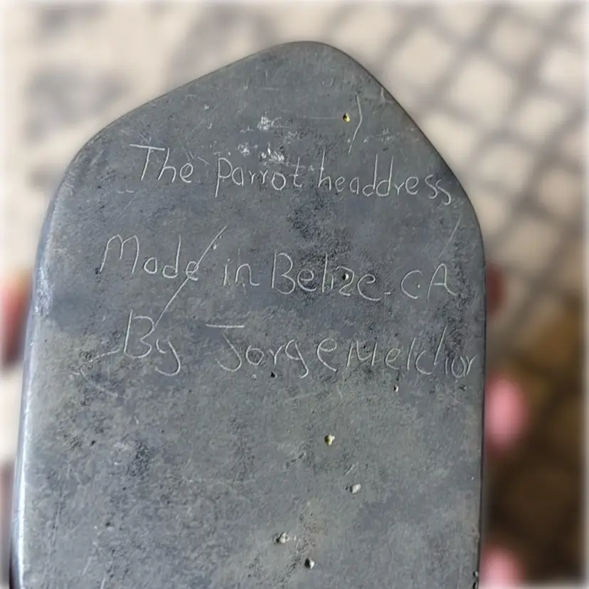 Parrot Headdress by Jorge Melchor Stone Art Carving on Slate - 4.75” tall and 3.5” wide.