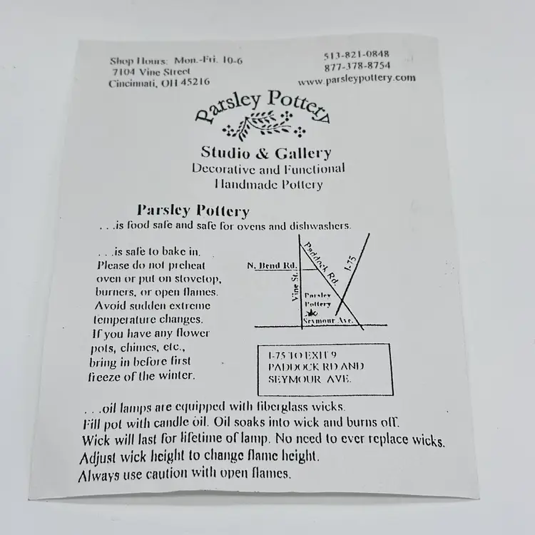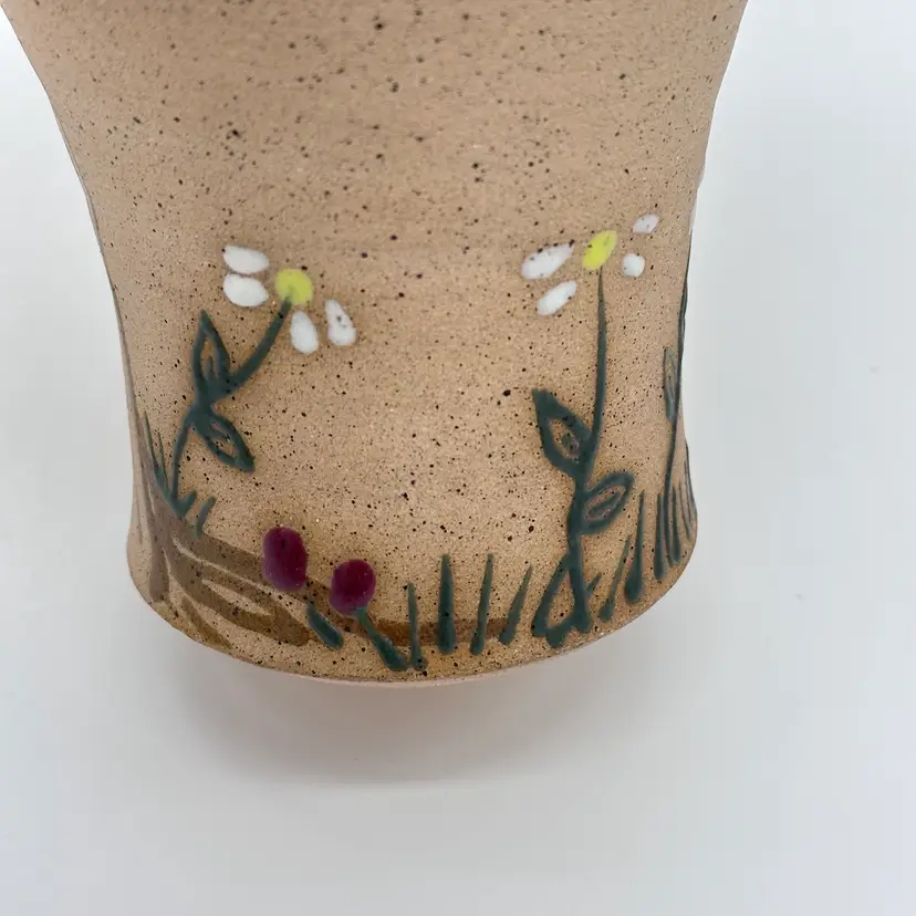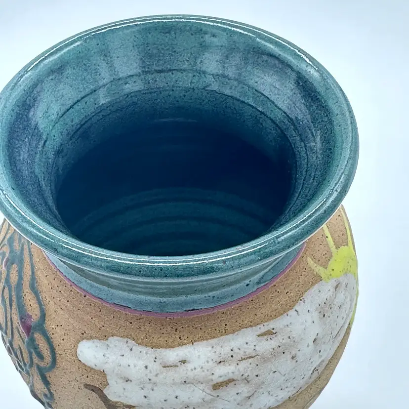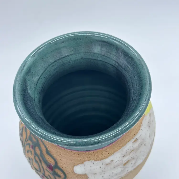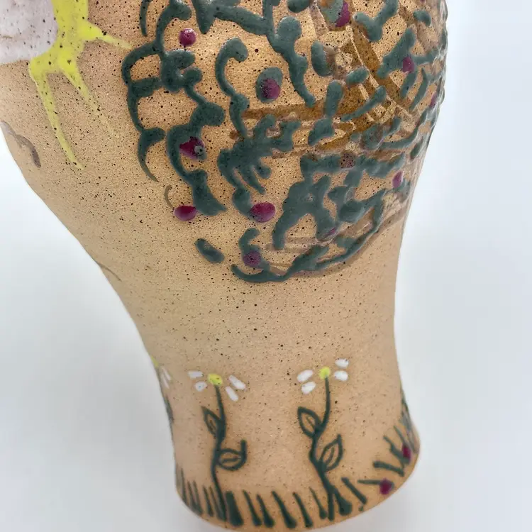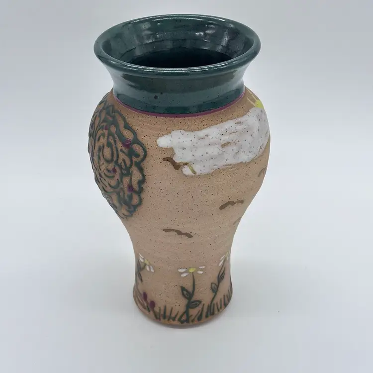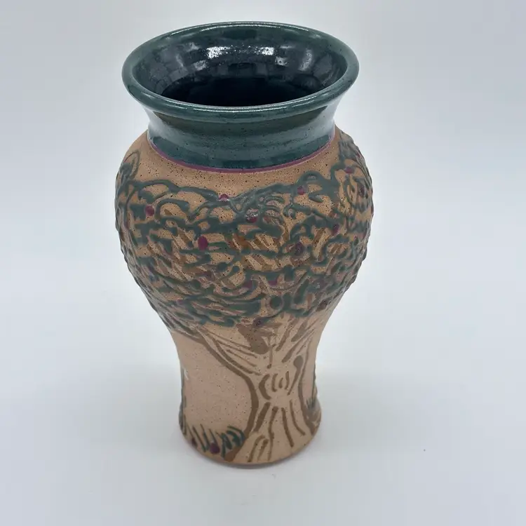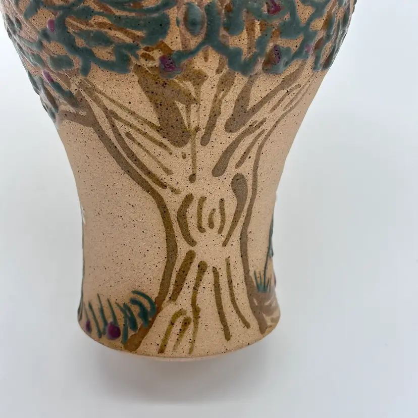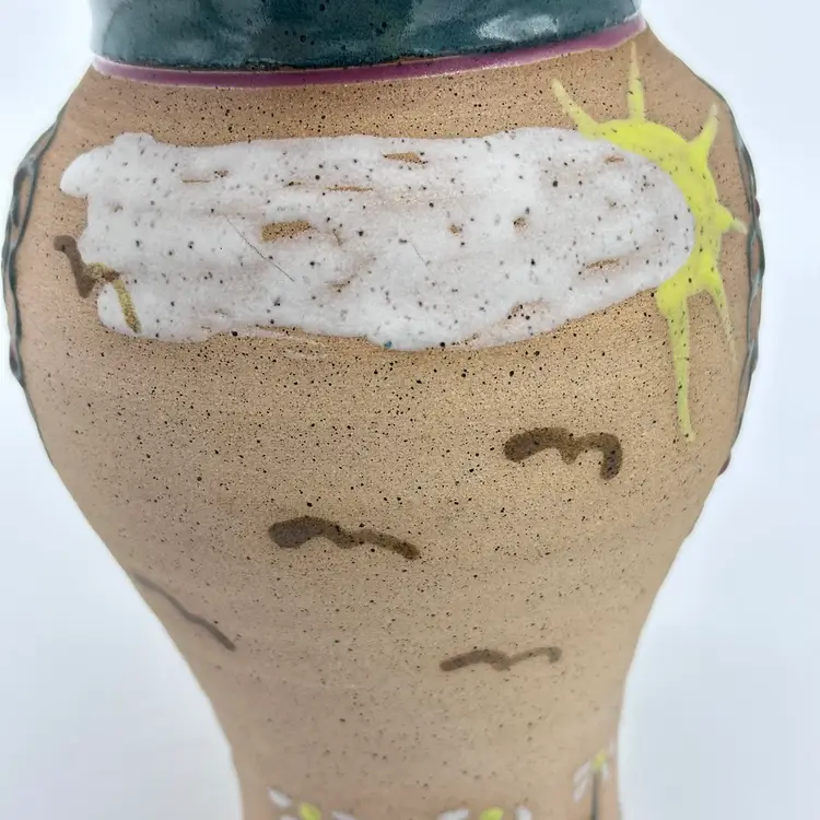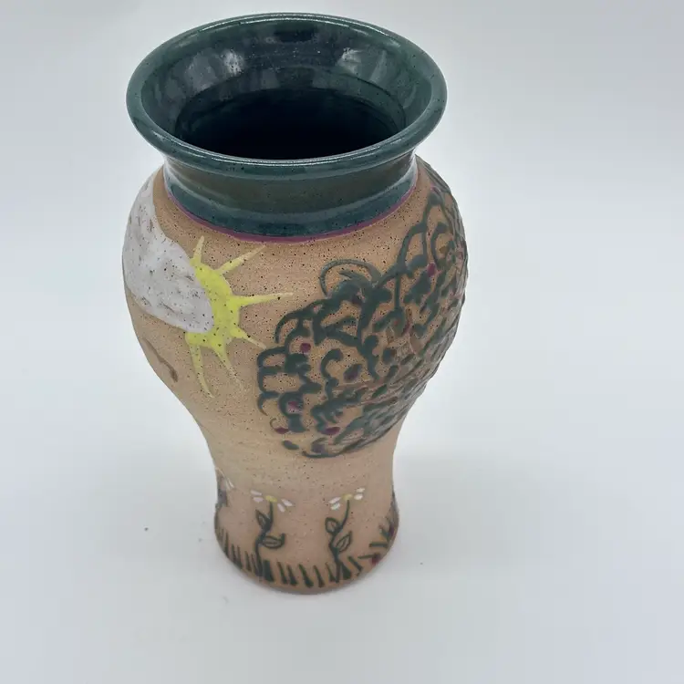 Parsley Pottery Ohio Art Studio Pottery Ceramic Folk Art Vase Tree Sun Clouds. In good condition. Does not have any chips or cracks. Measures 8 1/2 inches tall and 4 1/4 inches wide.