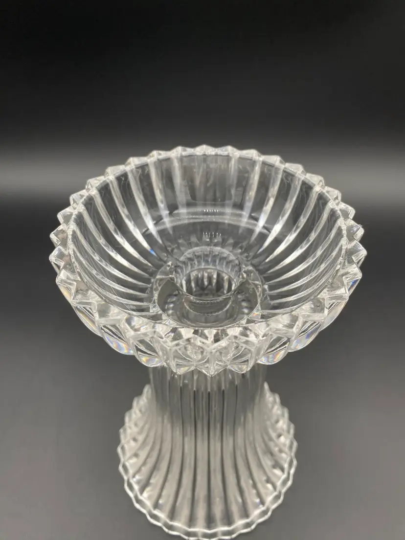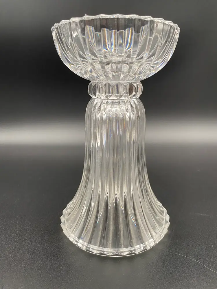 You are purchasing one Clear Glass & 24% Crystal Dual-Purpose Candlestick Holder or Vase by PartyLite. This Piece is around 7 inches tall and up to 4 inches wide. This Votive is in great condition with no chips, cracks, scratching or staining.