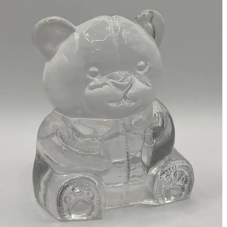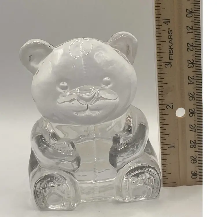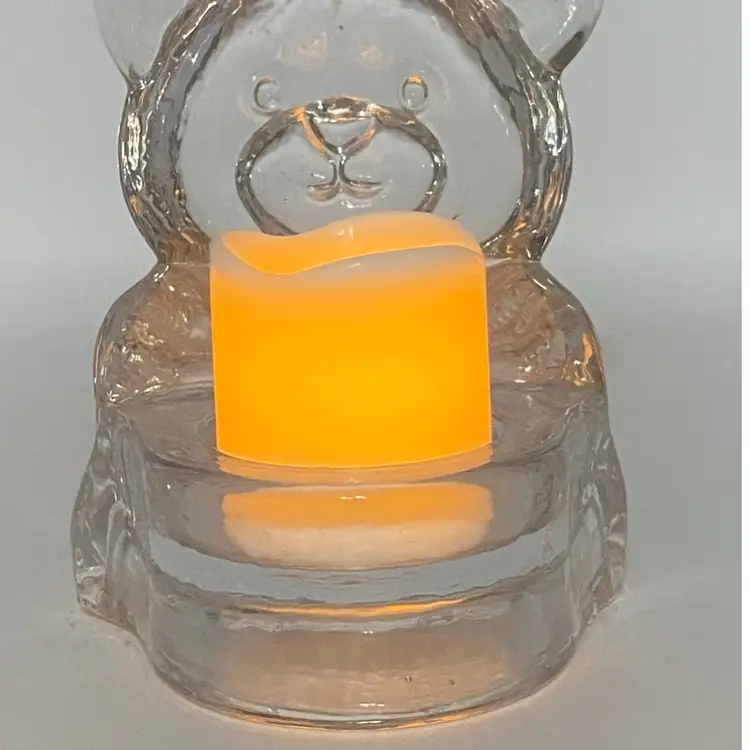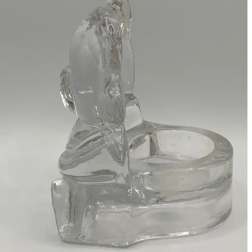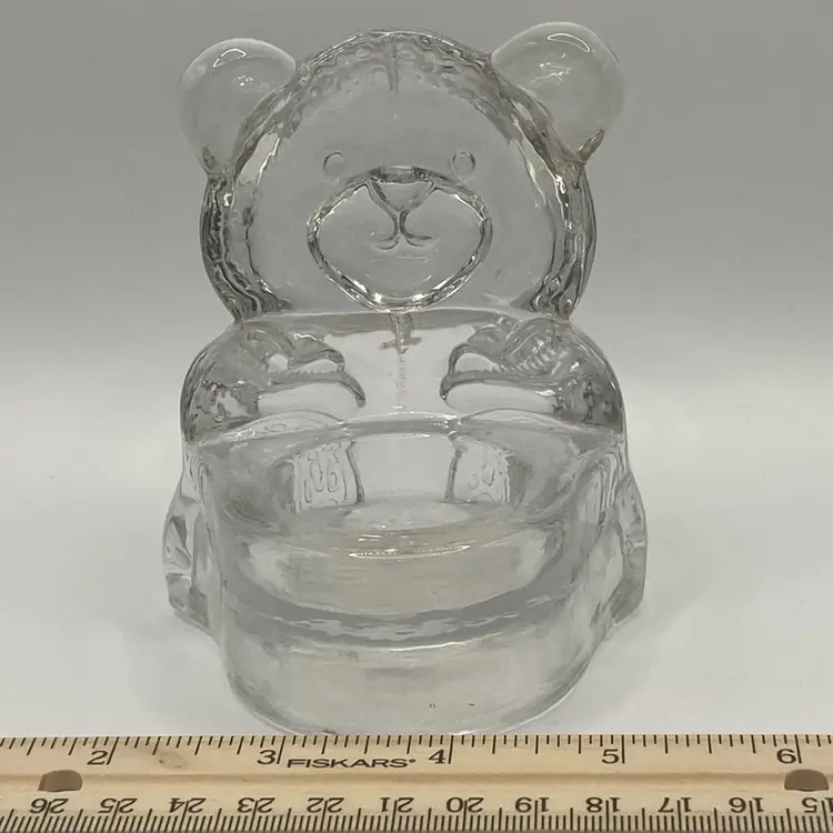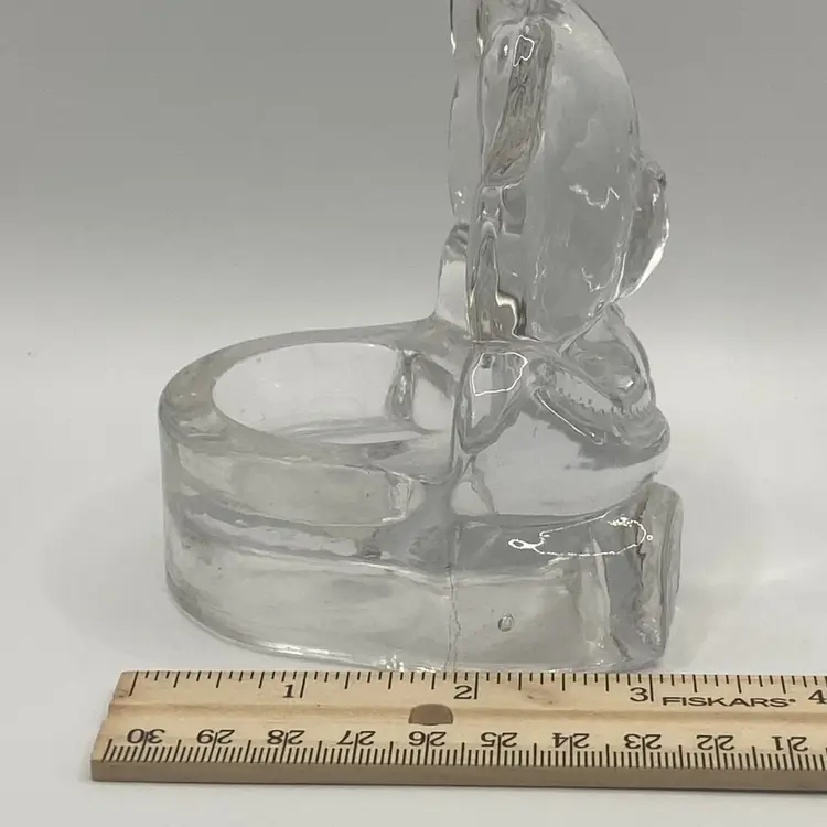 This votive holder is sweet as can be at about 3” wide, 3” long, and 3 3/4” tall. He is in very good shape with no chips or cracks. Stick a battery operated votive in and you have a soft nightlight for the kiddos.