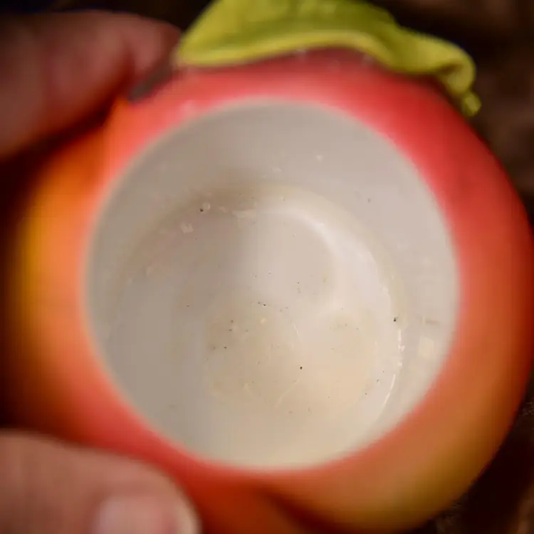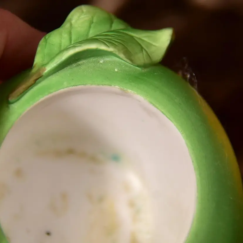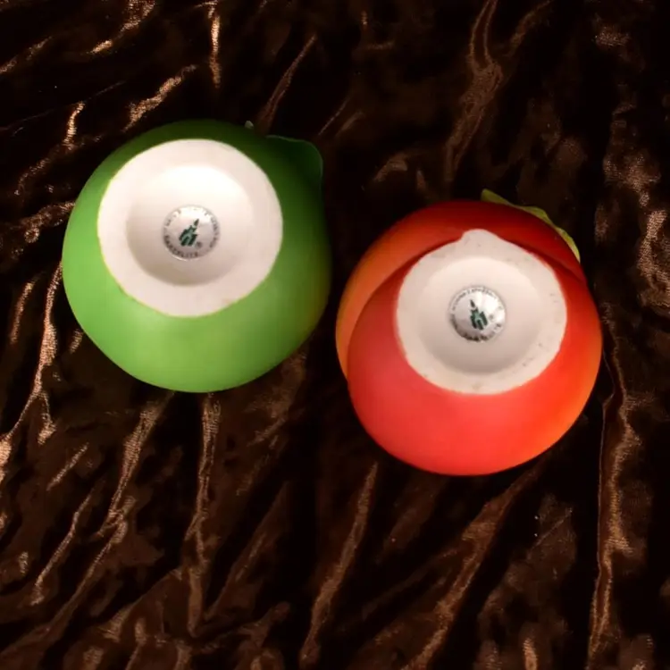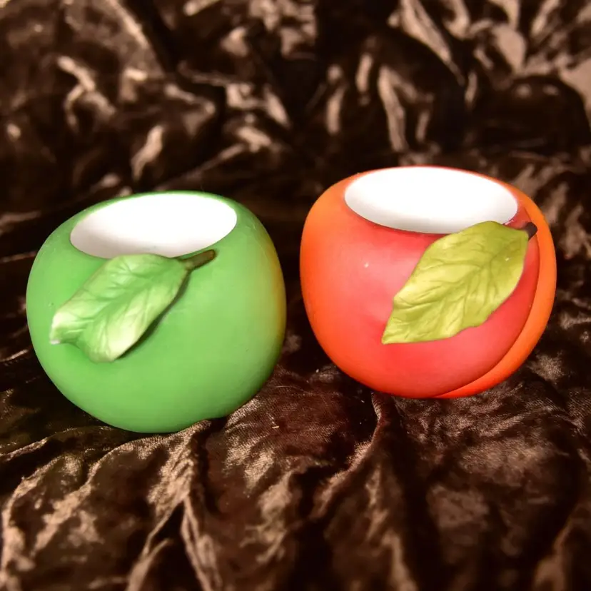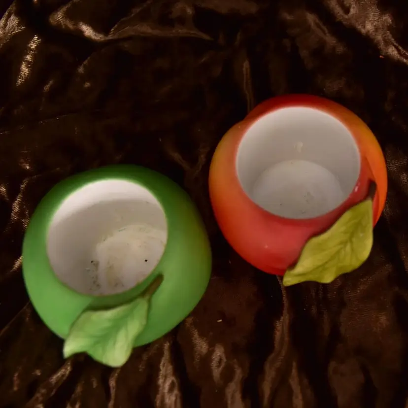 Partylite Ceramic Votive Holders Fruit Splash Peach And Green Apple See Photos small chip in leaf