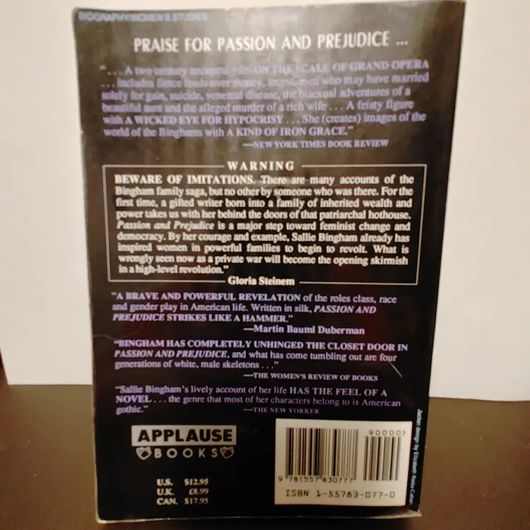 Passion & Prejudice by Sallie Bingham. Signed copy. Published 1989