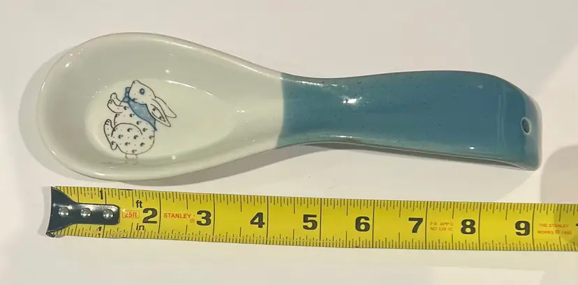 Very nice looking simple design spoon rest. Size is approximately 9" long.