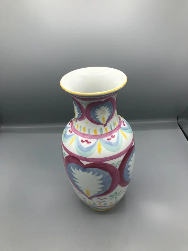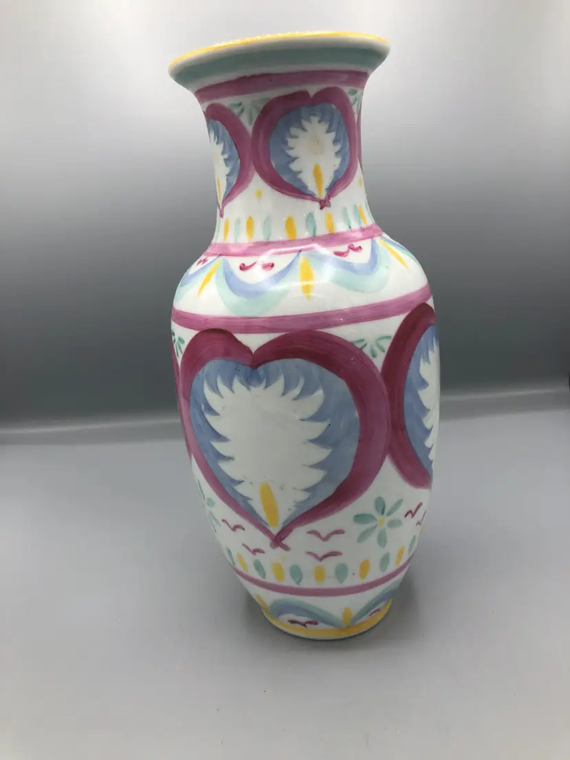Pastel colored vase that would look amazing in any spring display or table. this is a large beaautiful vase. This vase has no cracks or chips.