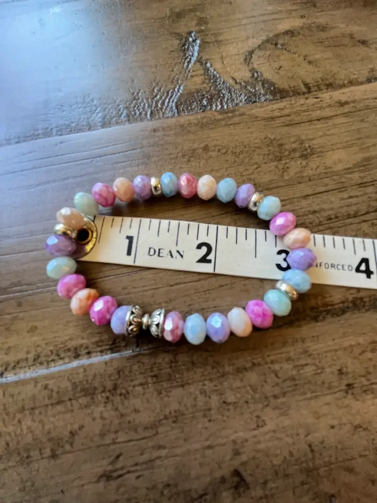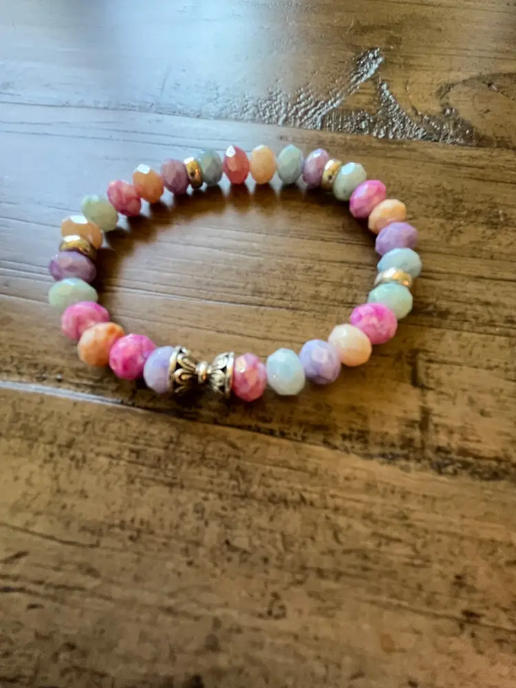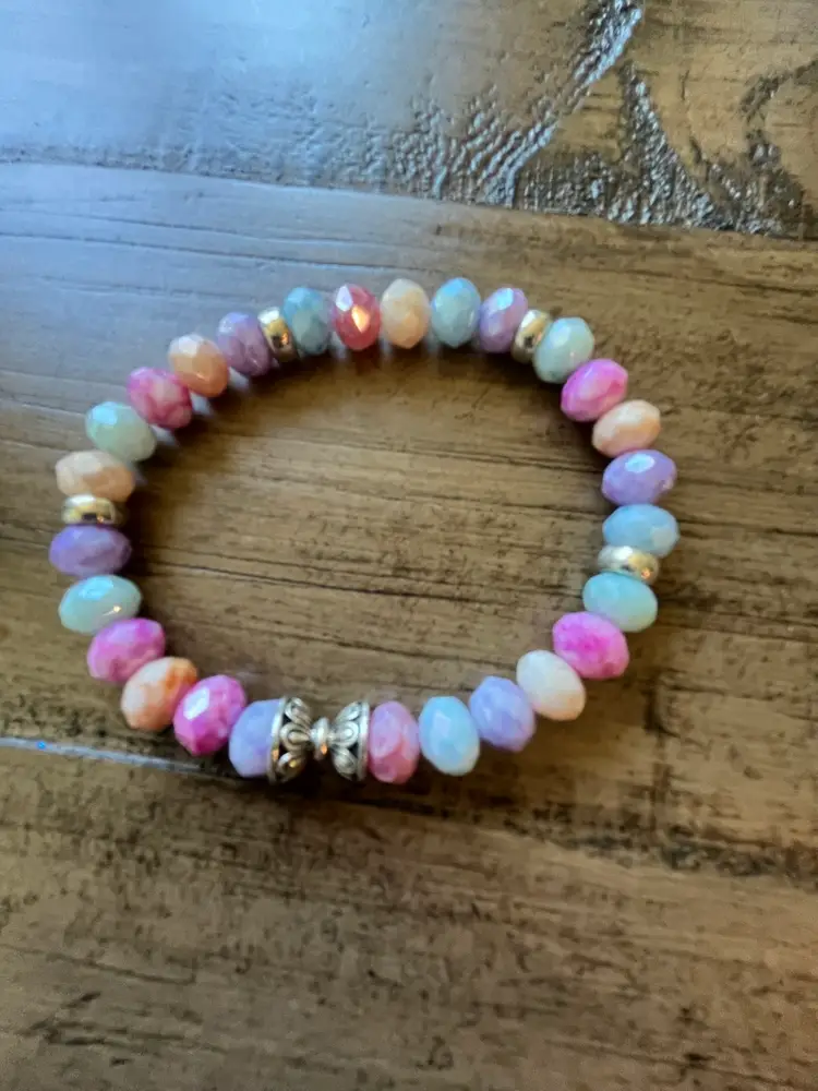 Pastel faceted Czech glass beads and silverplated spacers.I will combine shipping.