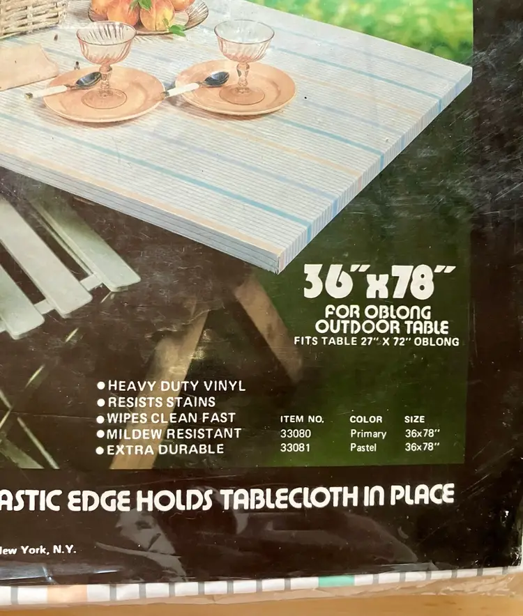 Add a touch of color and durability to your outdoor table setting with this Pastel Stripe Heavy Duty Vinyl Elastic Edge Tablecloth. Made with high-quality materials, this oblong tablecloth fits tables that measure 27x72 inches and features an elastic edge that ensures a snug and true fit (with a 36” x 78” before it fits on to the table). The mildew-resistant and stain-resistant fabric wipes clean fast and is extra durable, making it perfect for tables at picnics, beach outings, garden, patio, deck, campgrounds, and other outdoor activities.