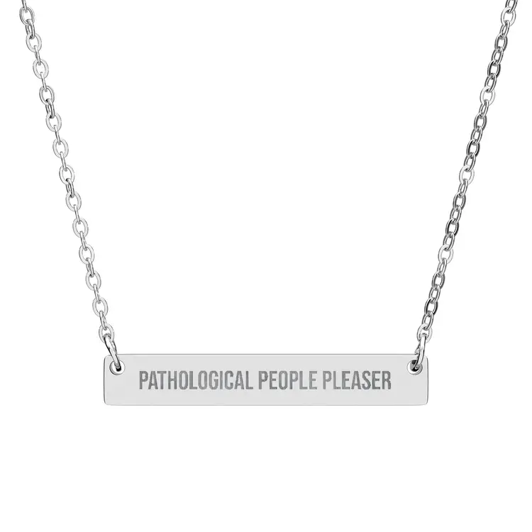 Pathological People Pleaser Horizontal Bar Necklace, Engraved